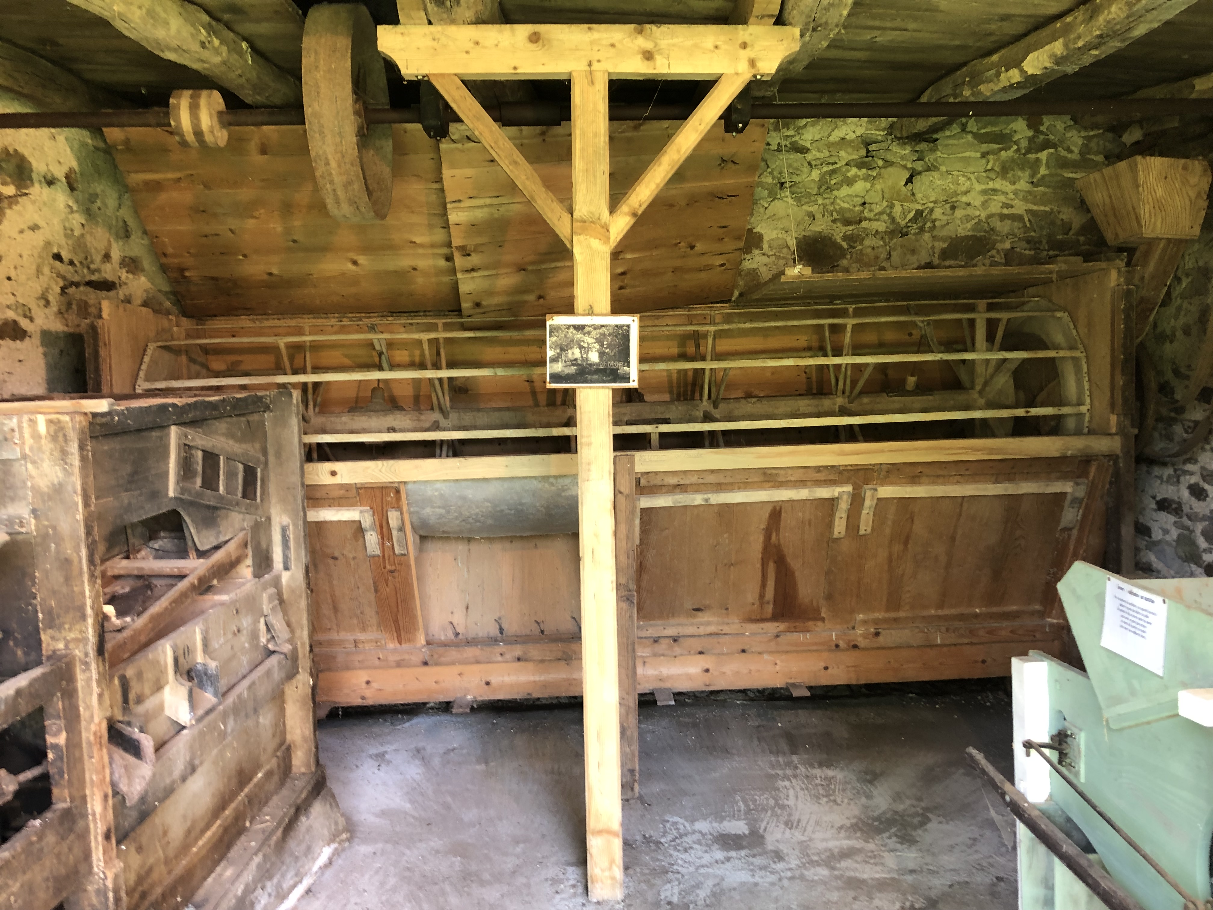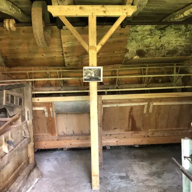 Familles et enfants peuvent découvrir le fonctionnement du moulin avec ses meules, ses roues à aubes horizontales, son blutoir, la pièce de vie du meunier, la grange à grain, le four à pain, le bief et le bassin d'alimentation en eau du moulin.