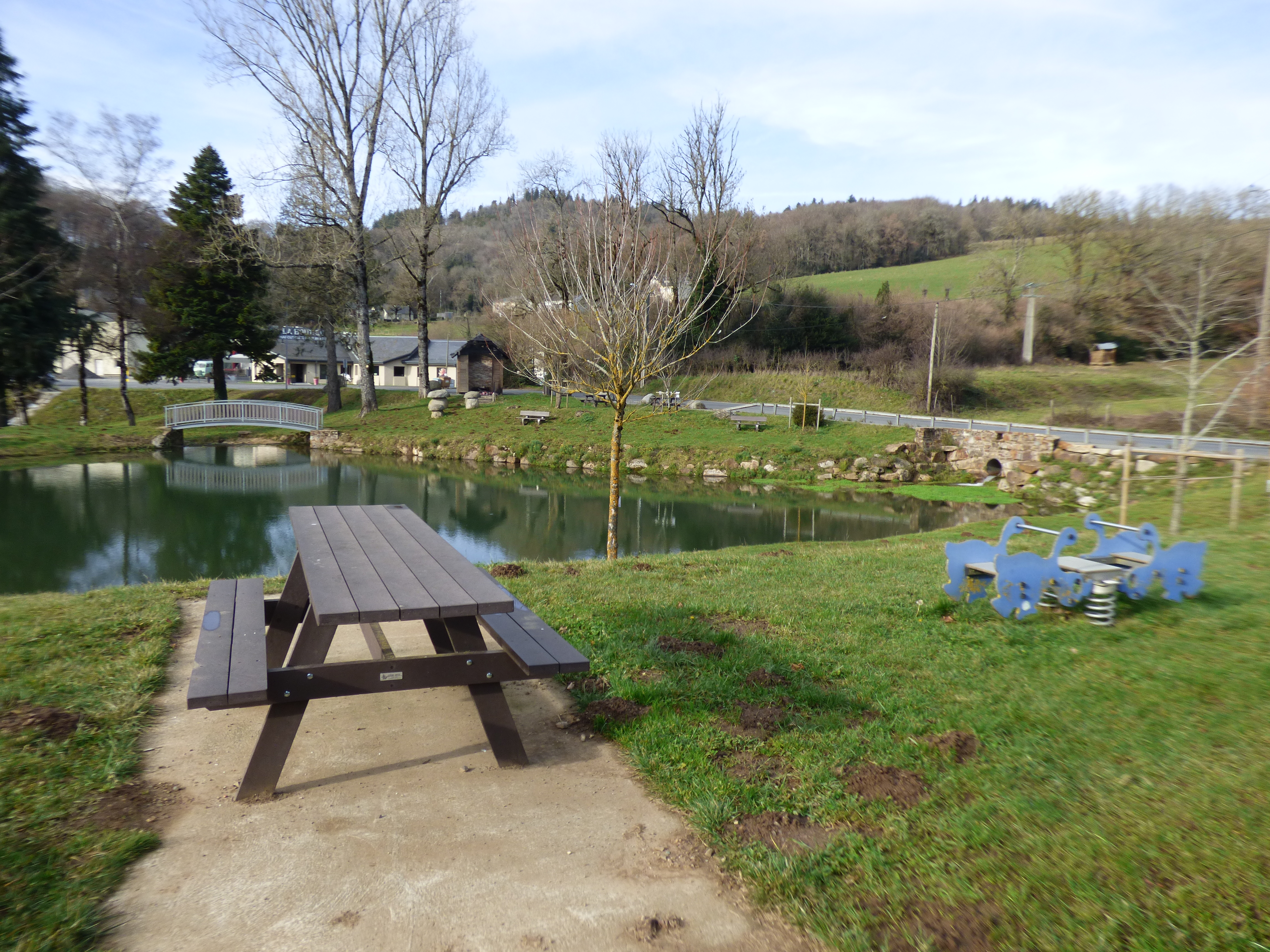 Idéale pêche, aire aménagée autour du plan d'eau de Granisse, équipée d'un petit espace de jeux pour enfants. Proche d'une aire de repos pour camping-cars et d'une cabane à livres.