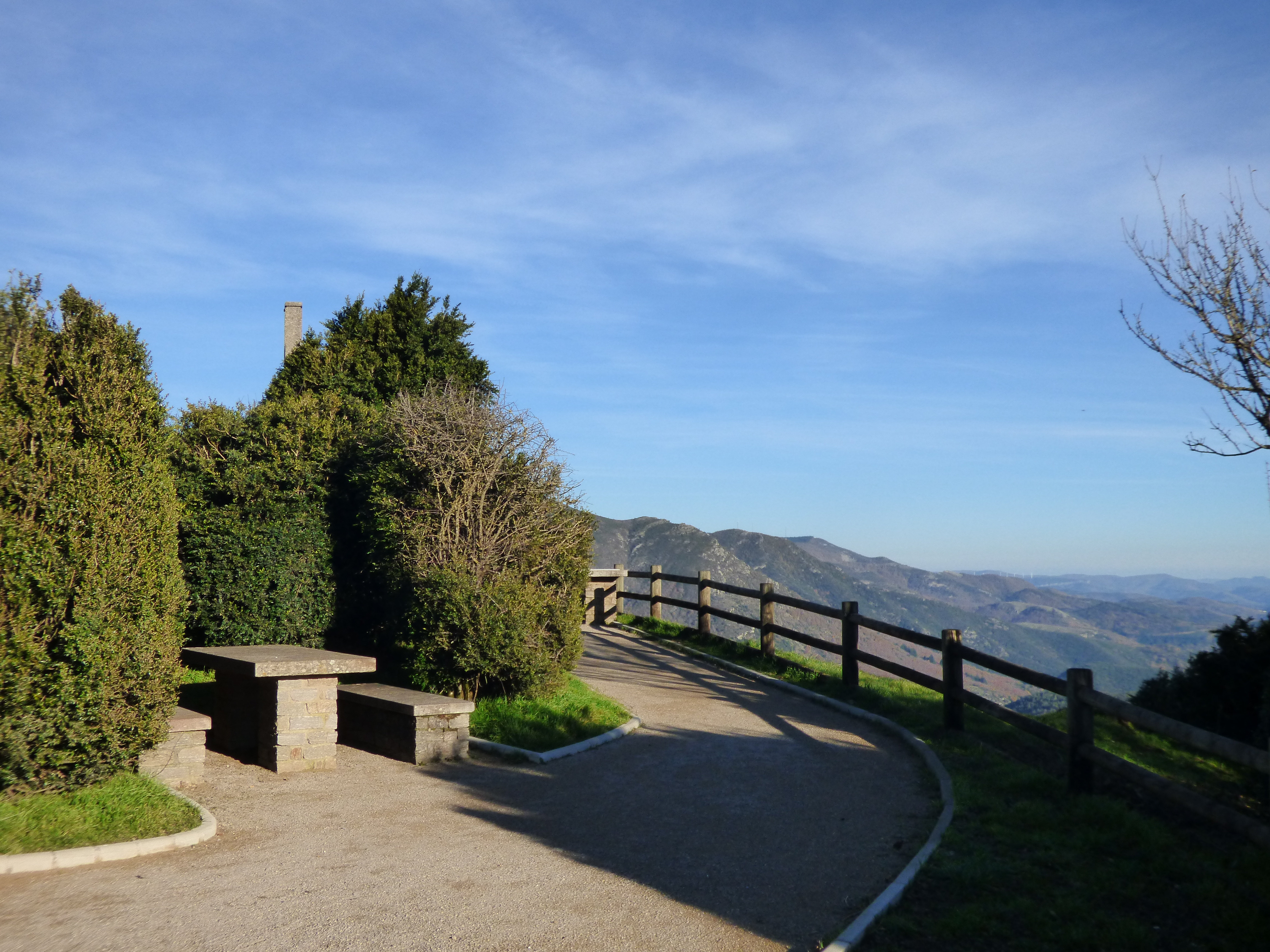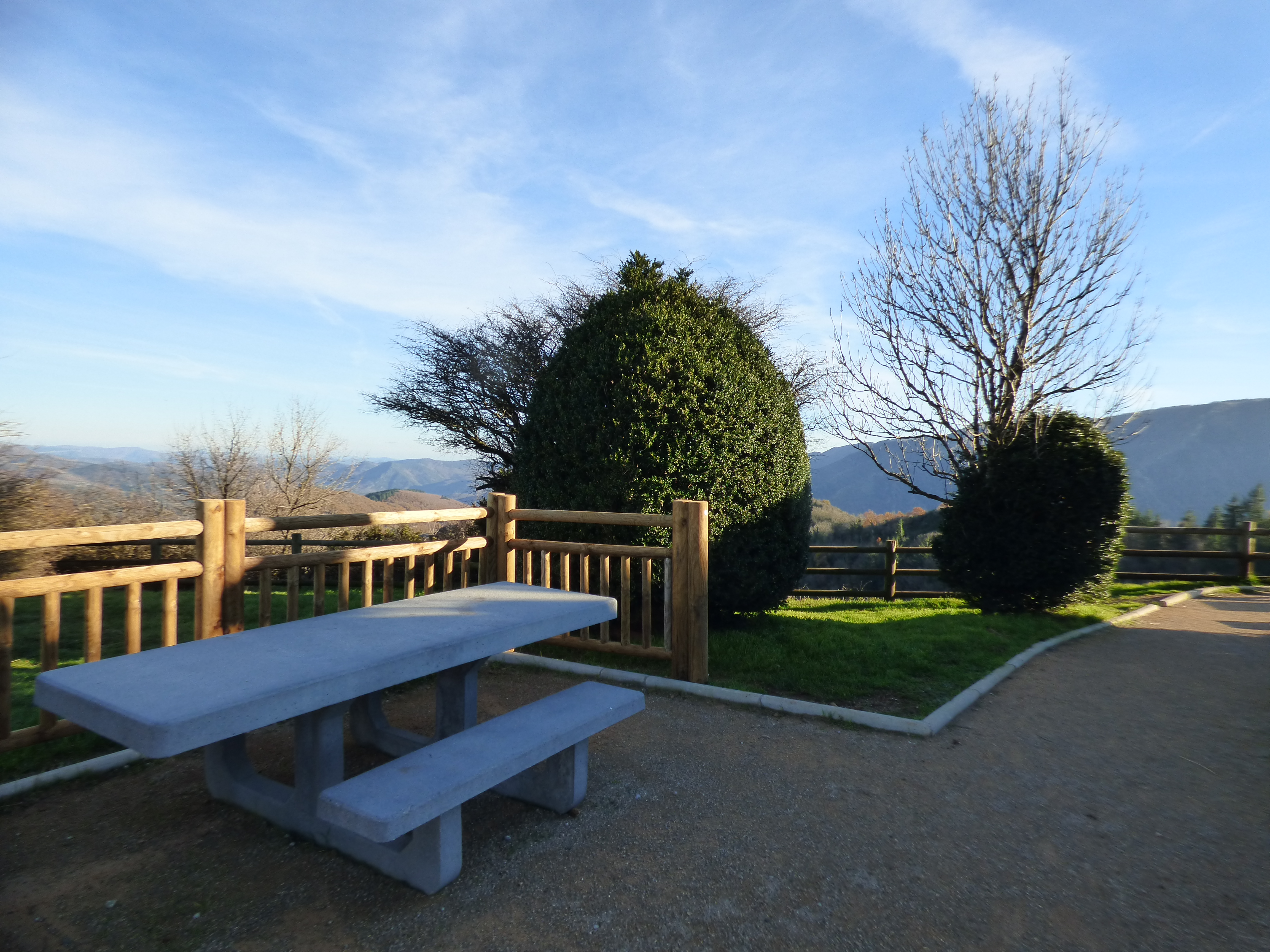 Belle aire équipée de plusieurs tables, d'un parking VL, PL et motos, de toilettes sèches et offrant un magnifique panorama sur le massif du Caroux-Espinouse et les falaises d'Orque.