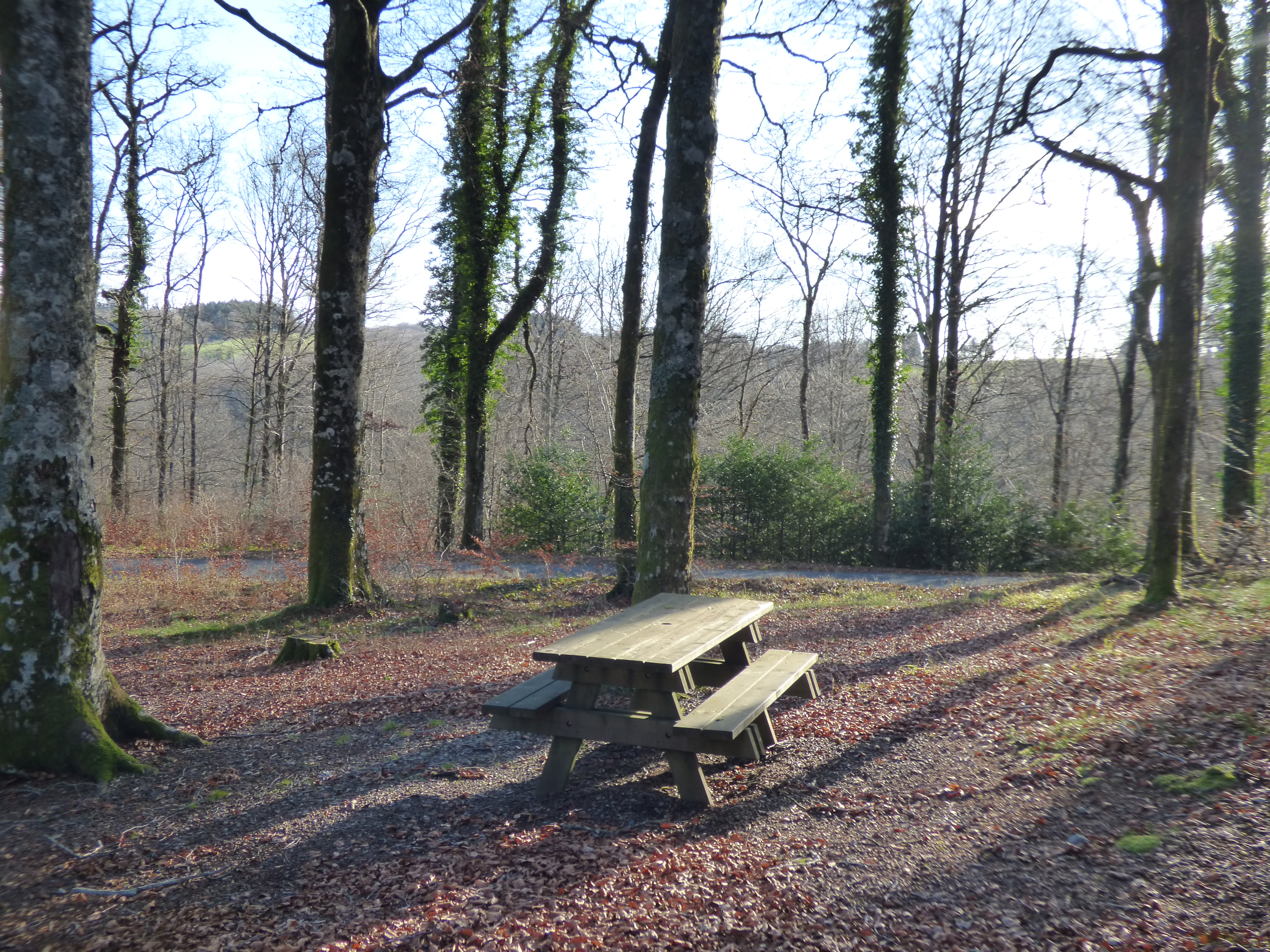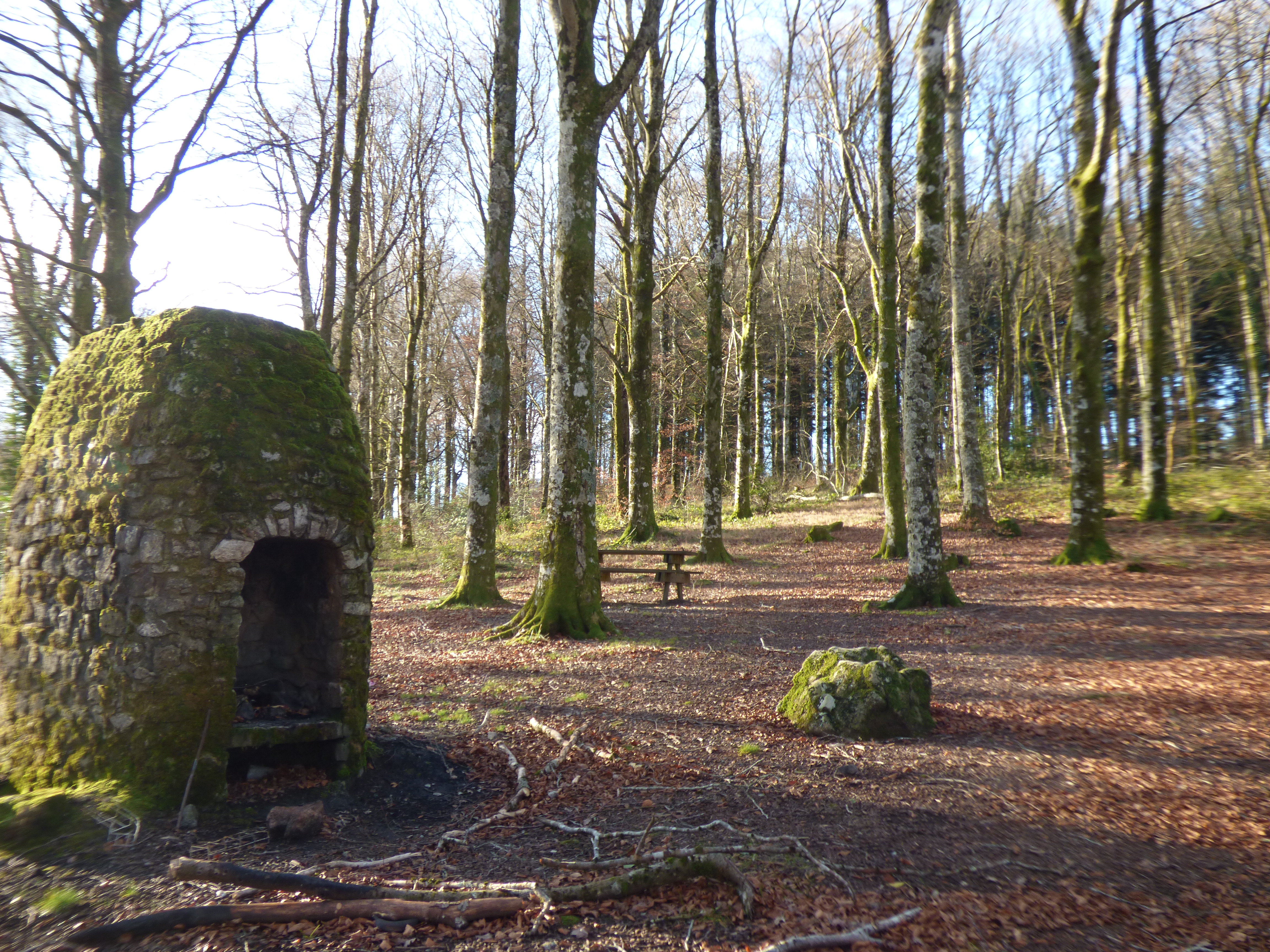 Située dans les bois, petite aire ombragée, équipée d'un barbecue à double foyer. Stationnement à proximité.