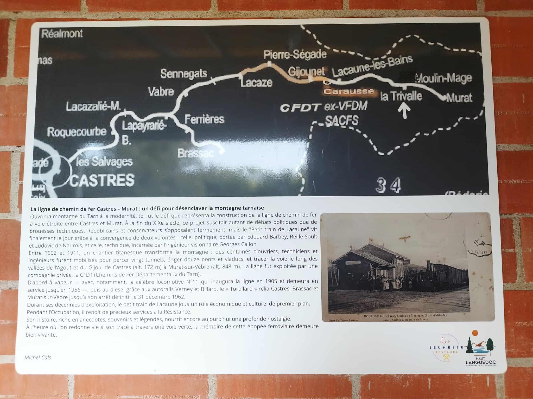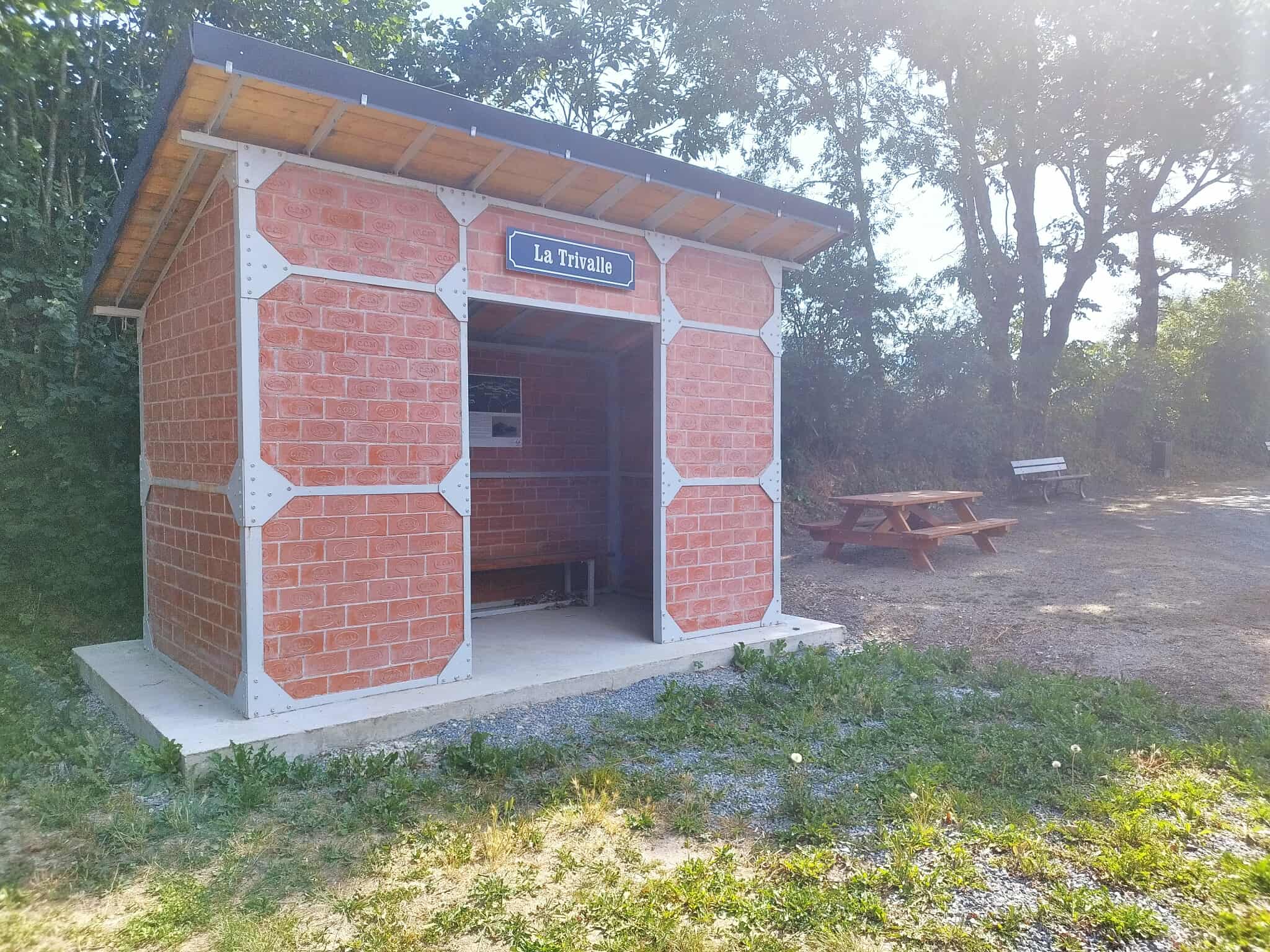 Nichée à La Trivalle, cette aire invite à une pause champêtre sous les arbres. Dans l’ancienne halte rénovée, un panneau vous murmure l’histoire du Petit Train, comme un secret à découvrir…