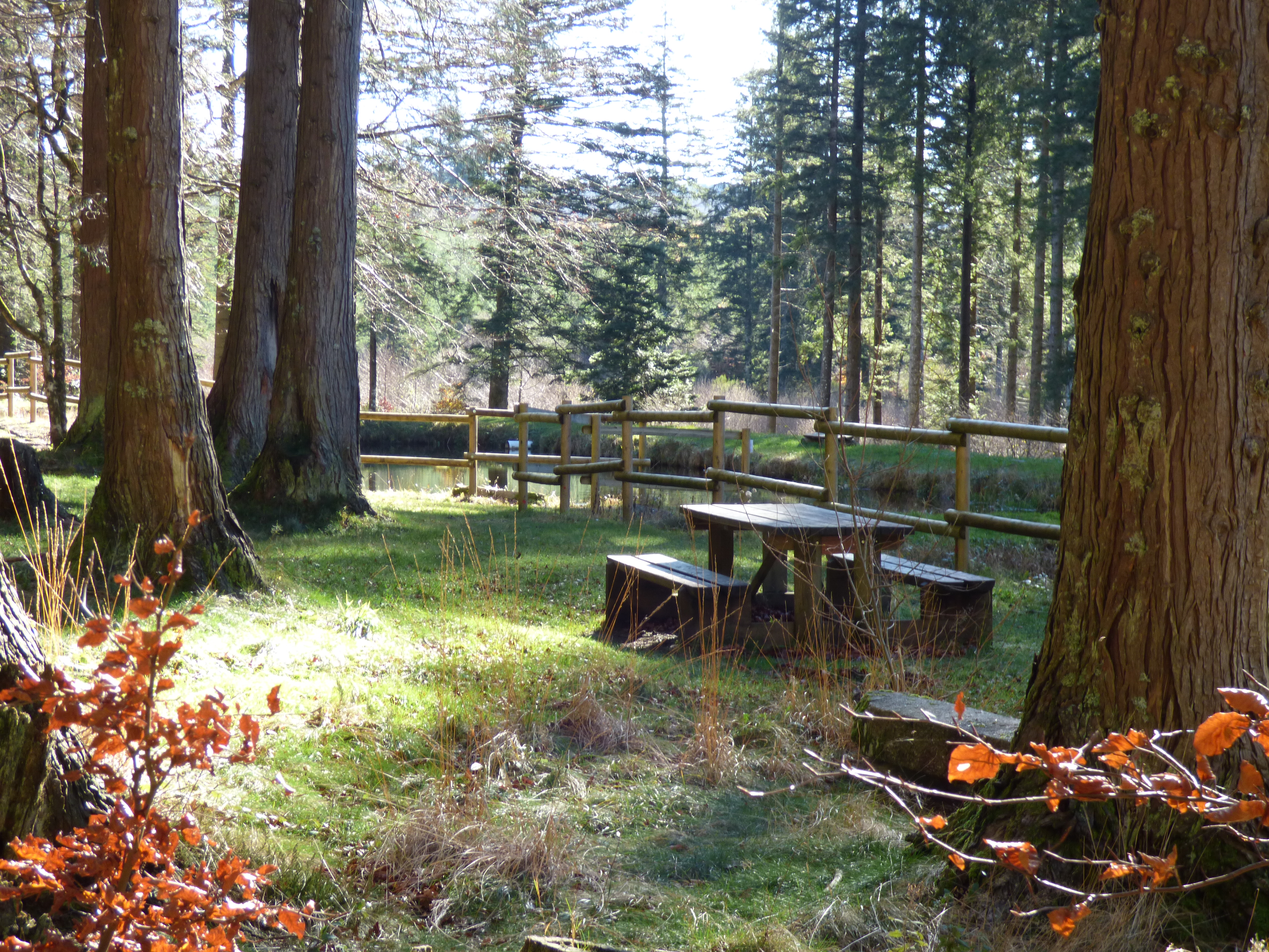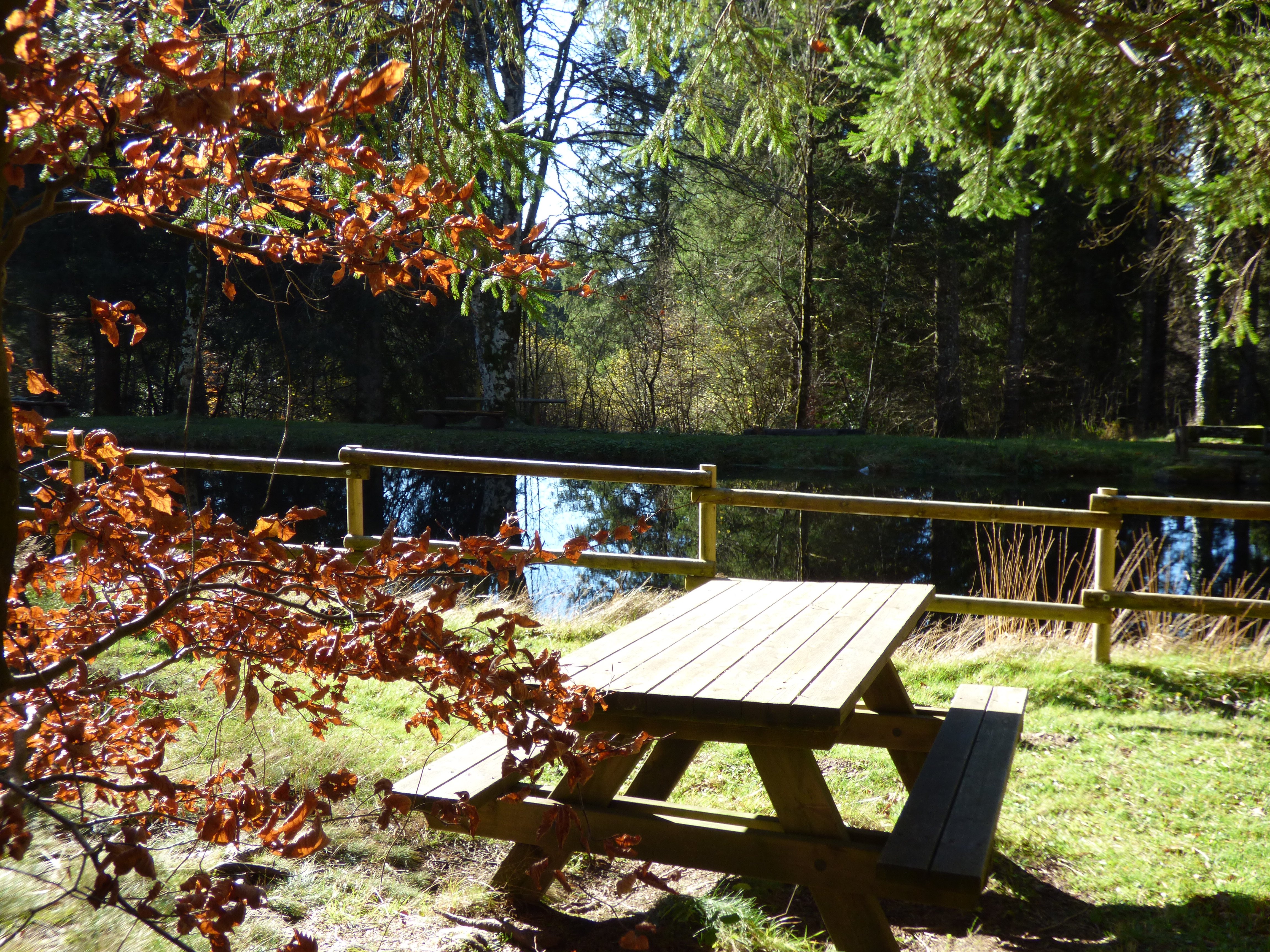 Idéale pêche, aire aménagée autour de 2 plans d'eau en forêt. Ponton accessible aux personnes à mobilité réduite et petit parking à proximité.