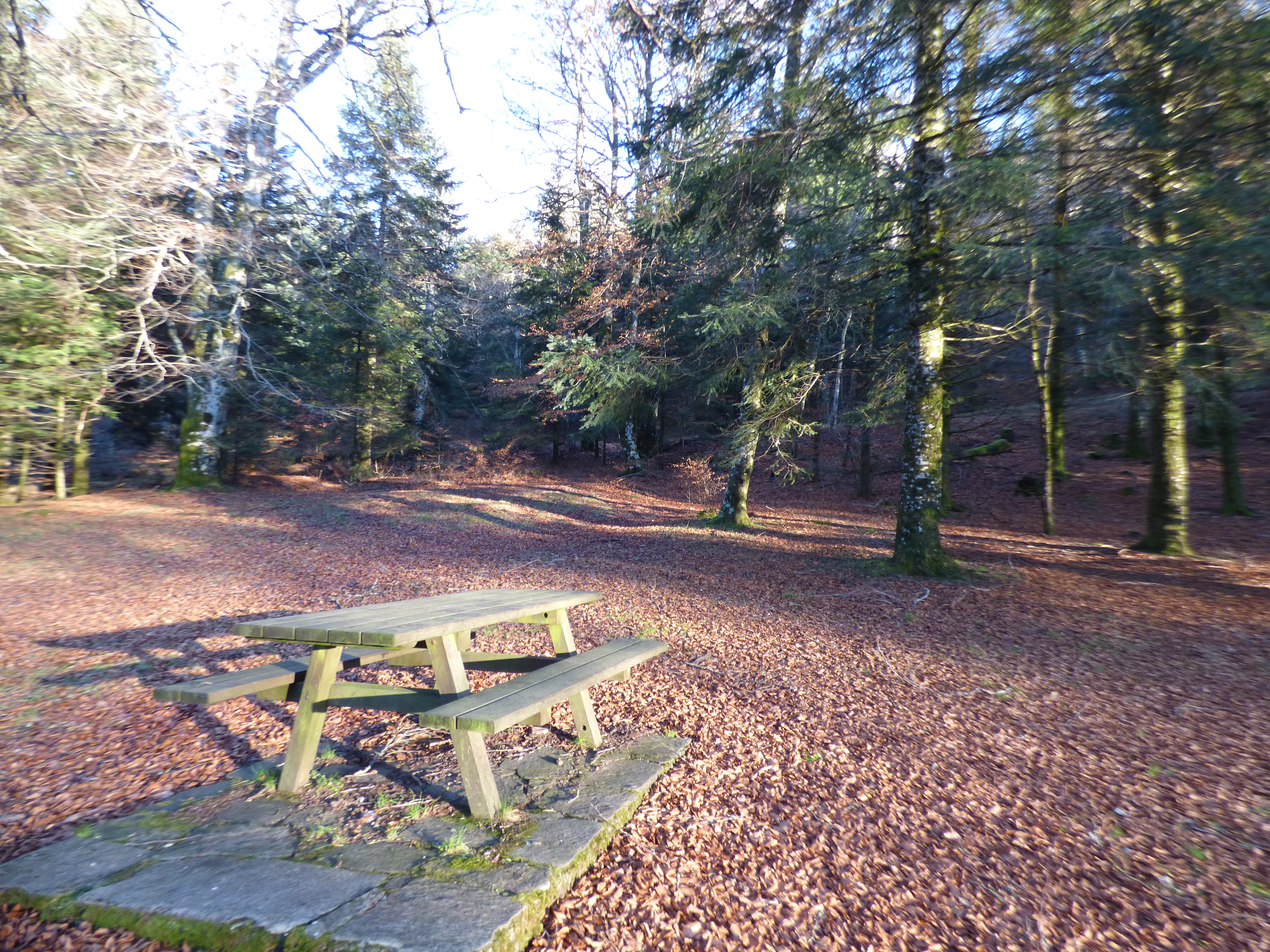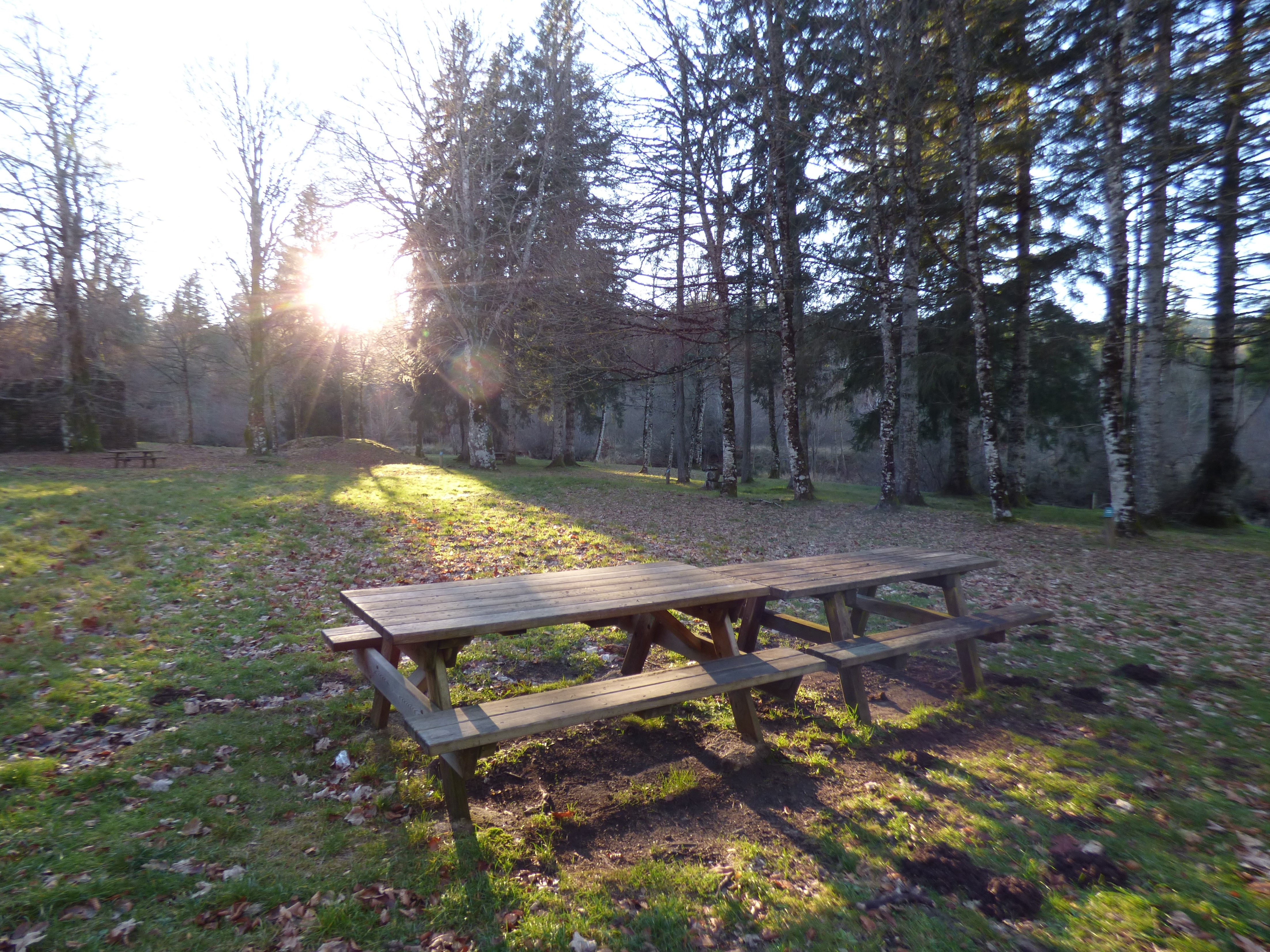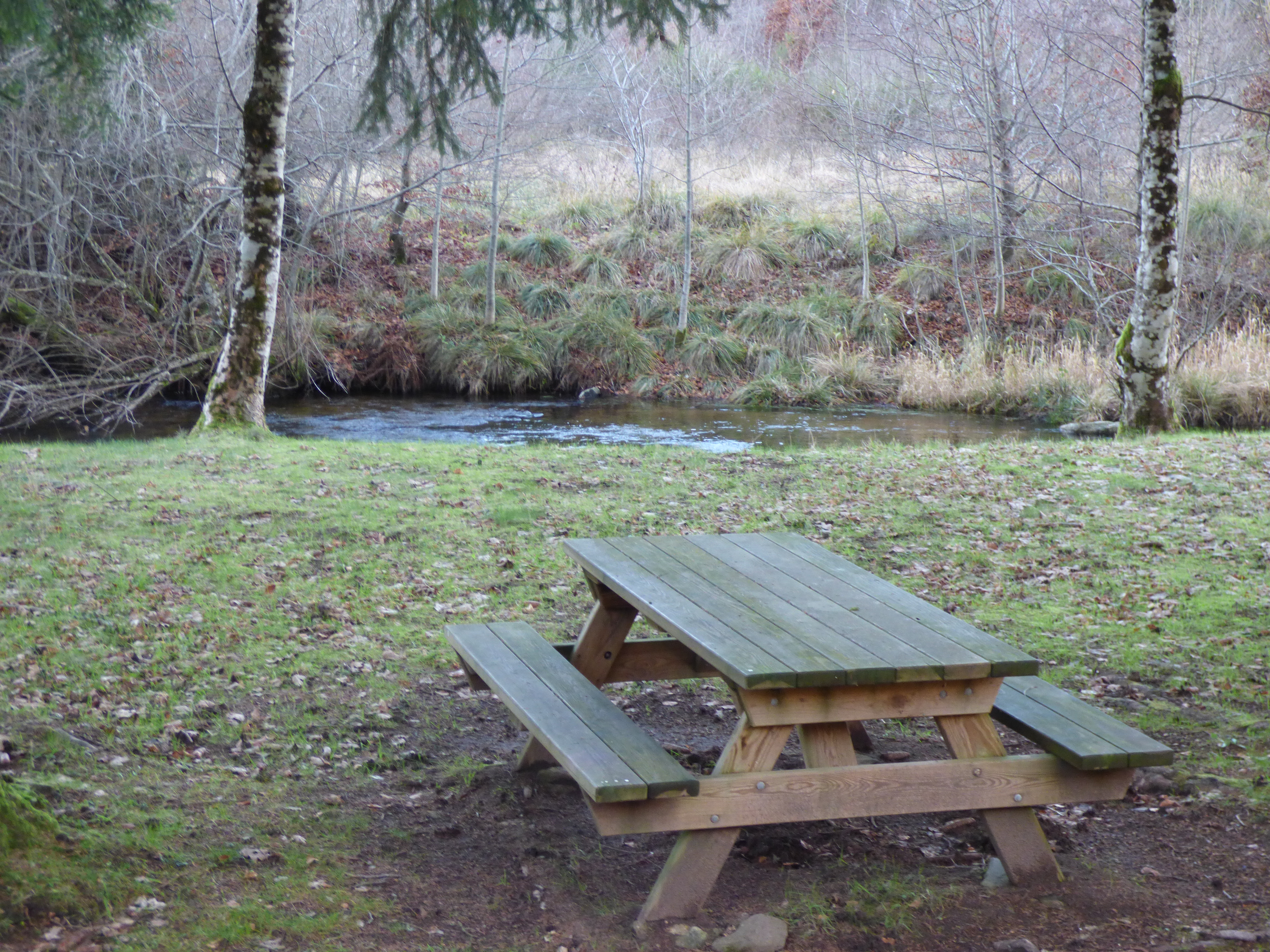 Très grande aire en bordure de rivière, ideale pour la pêche, équipée de 7 tables et d'un parking.