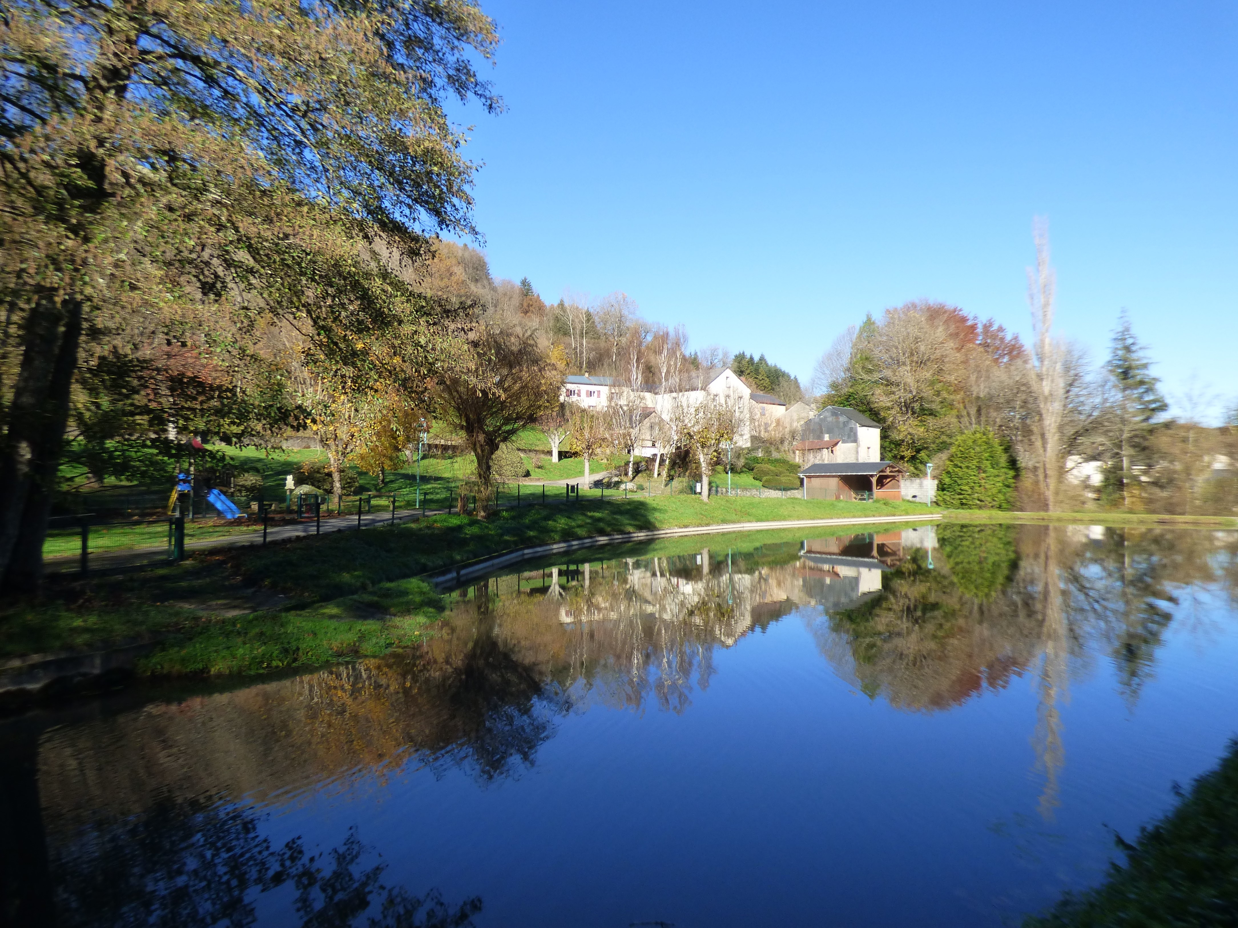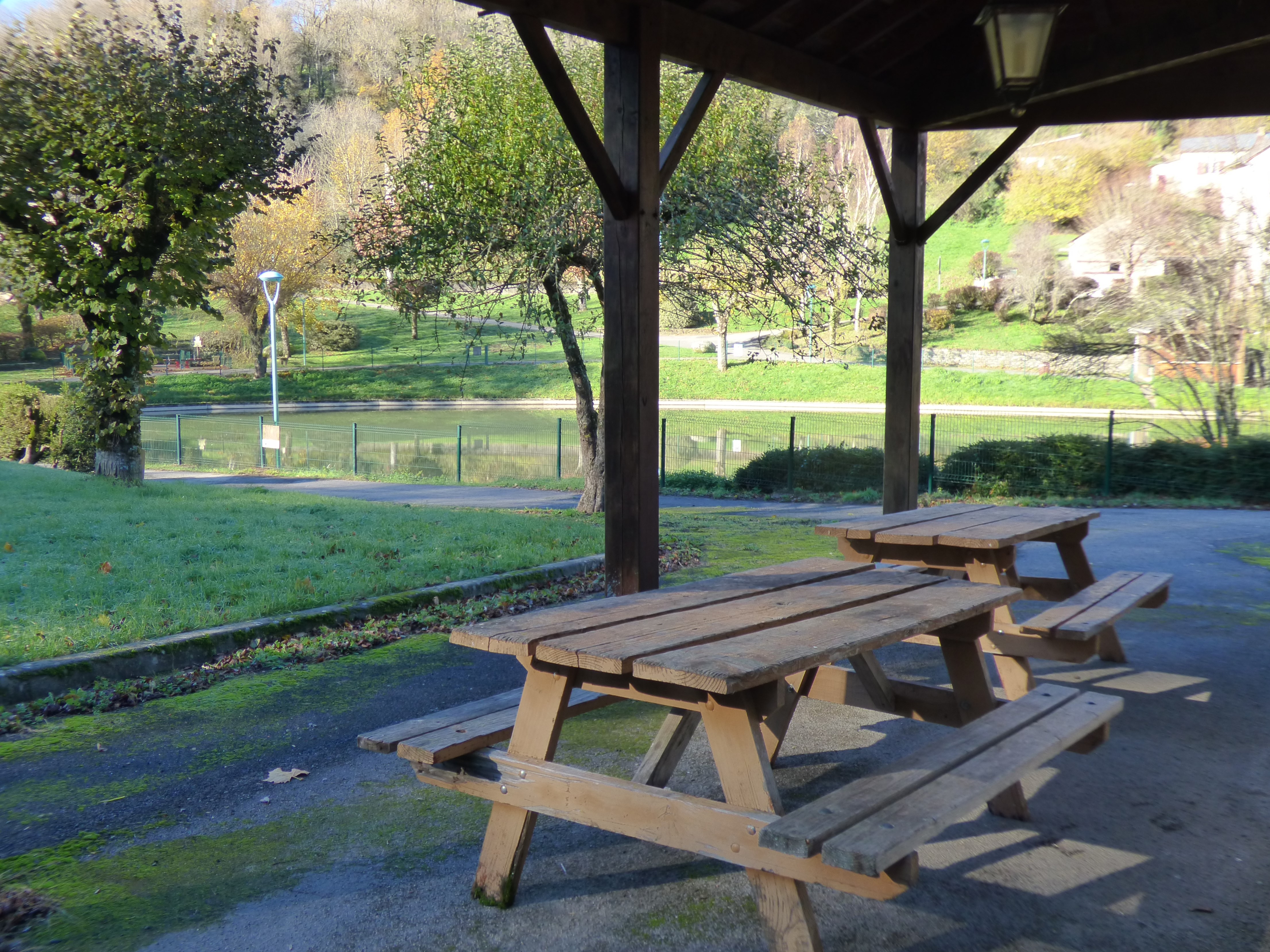 2 espaces couverts de part et d'autre d'un petit plan d'eau, idéal pour la pêche. Aire de jeux, parking et toilettes à proximité.
