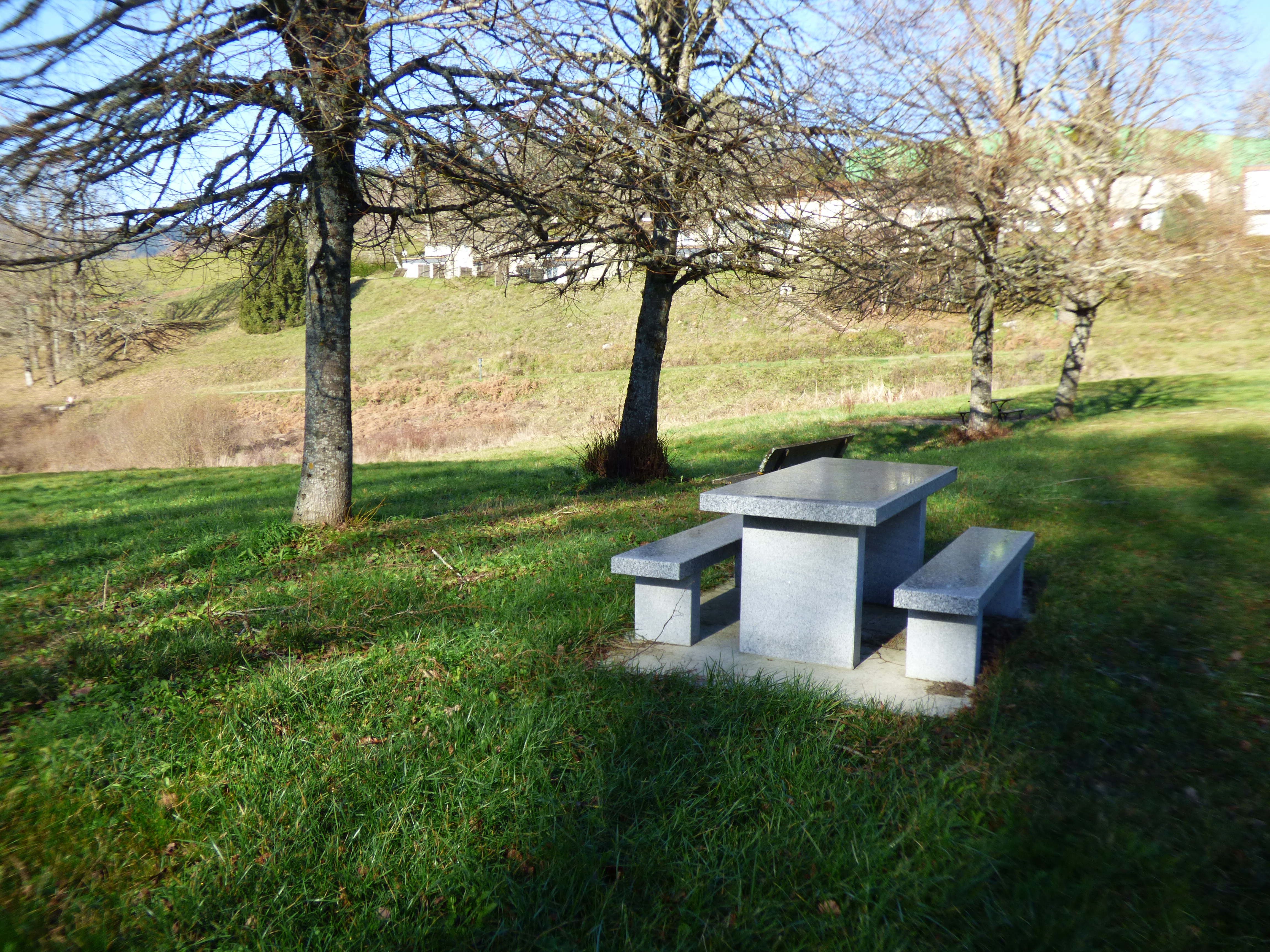 A proximité de la base de loisir des Bouldouïres, aire munie de 3 tables dont une accessible PMR.