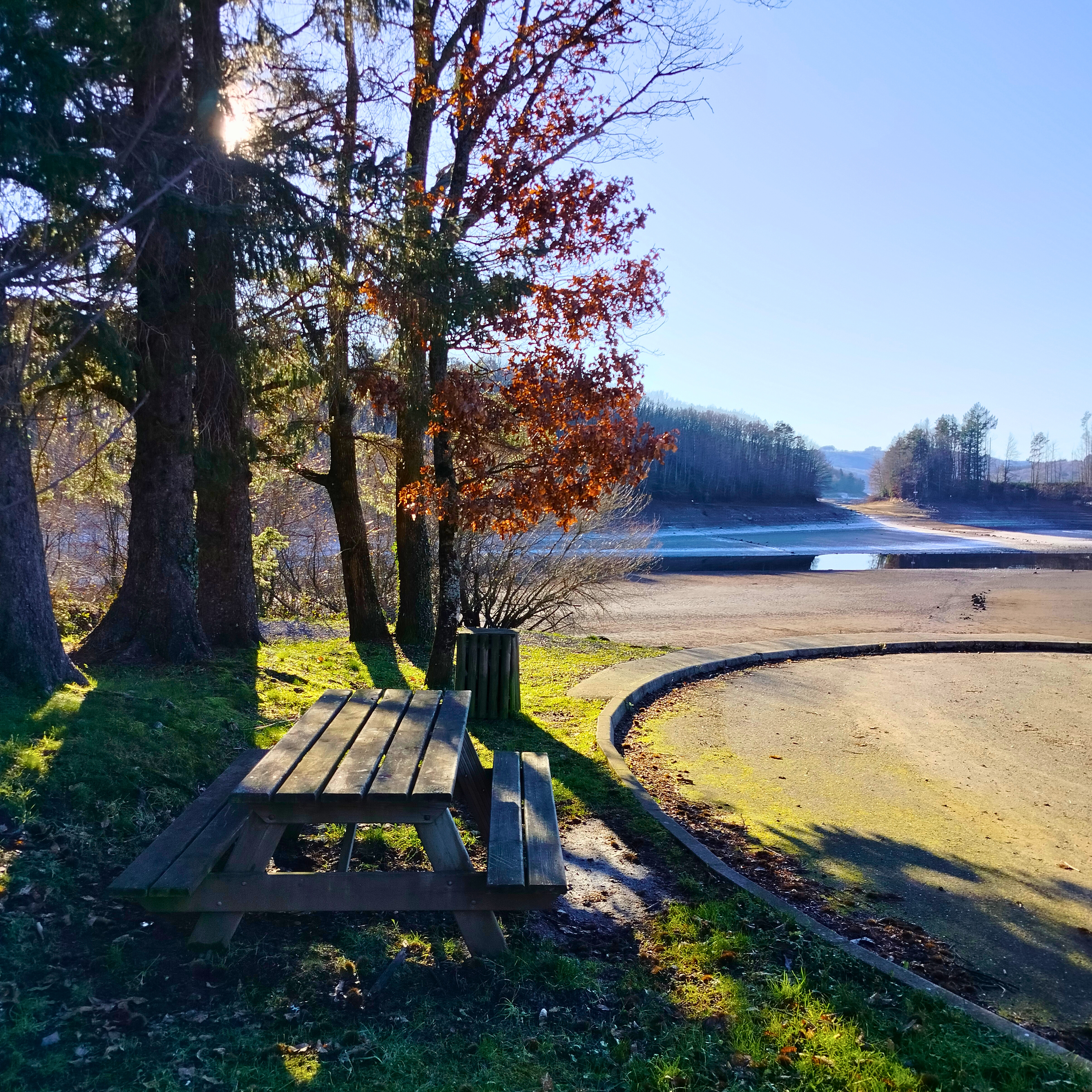 Petite aire ombragée face au lac de la Raviège et à proximité de la base de loisirs du Gua des Brasses.