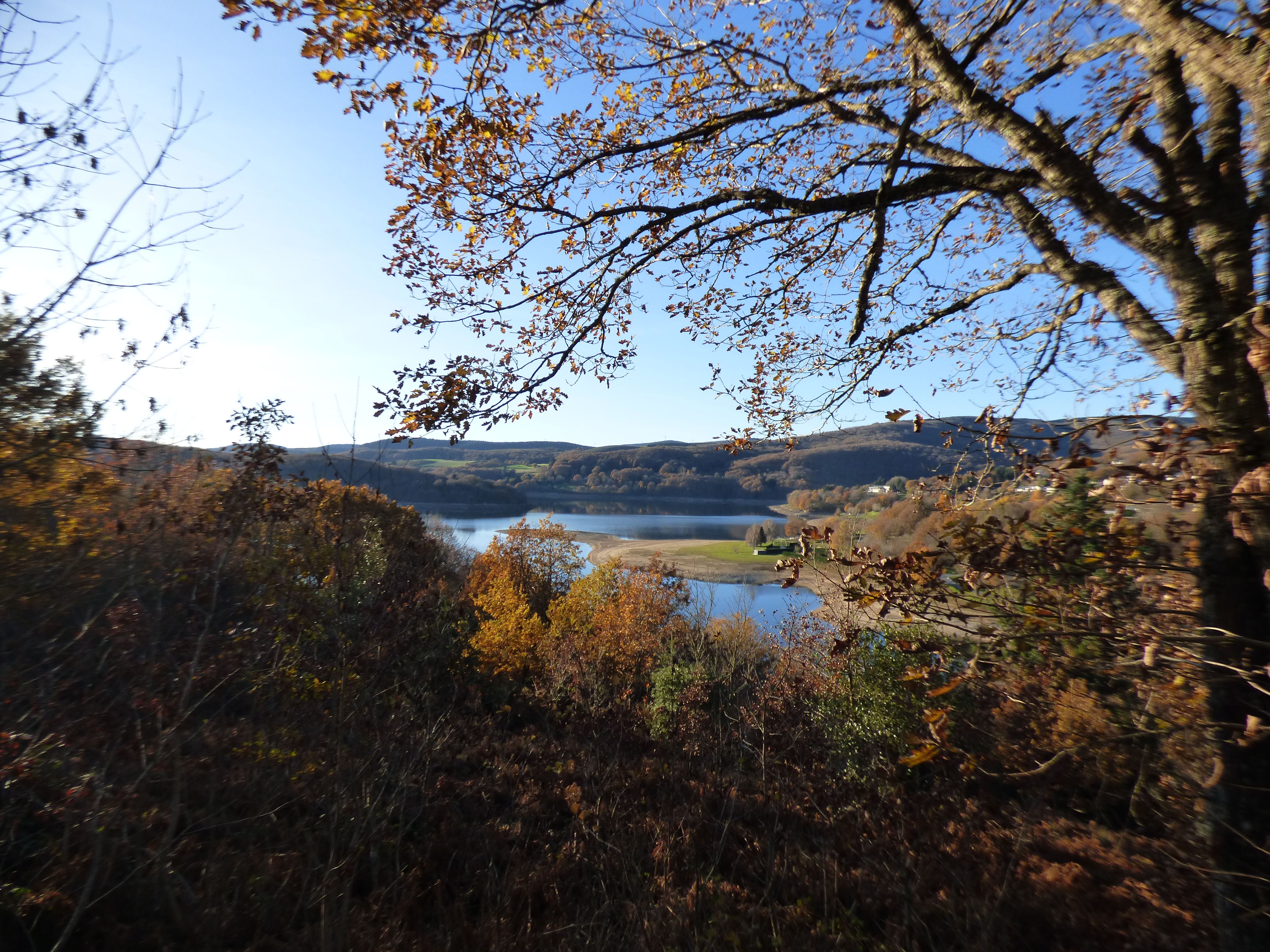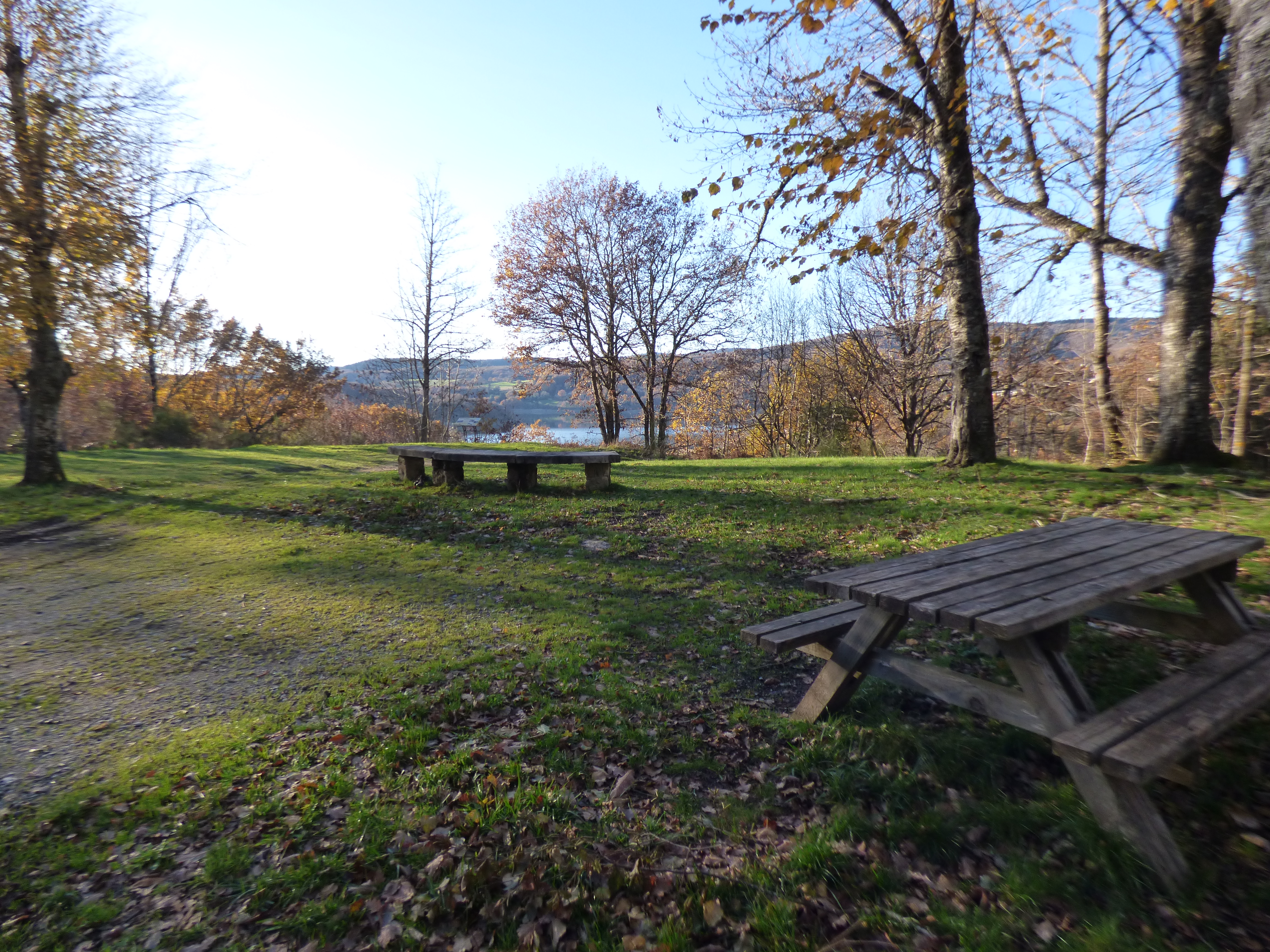 Aire en surplomb du lac du Laouzas, beau point de vue et parking.