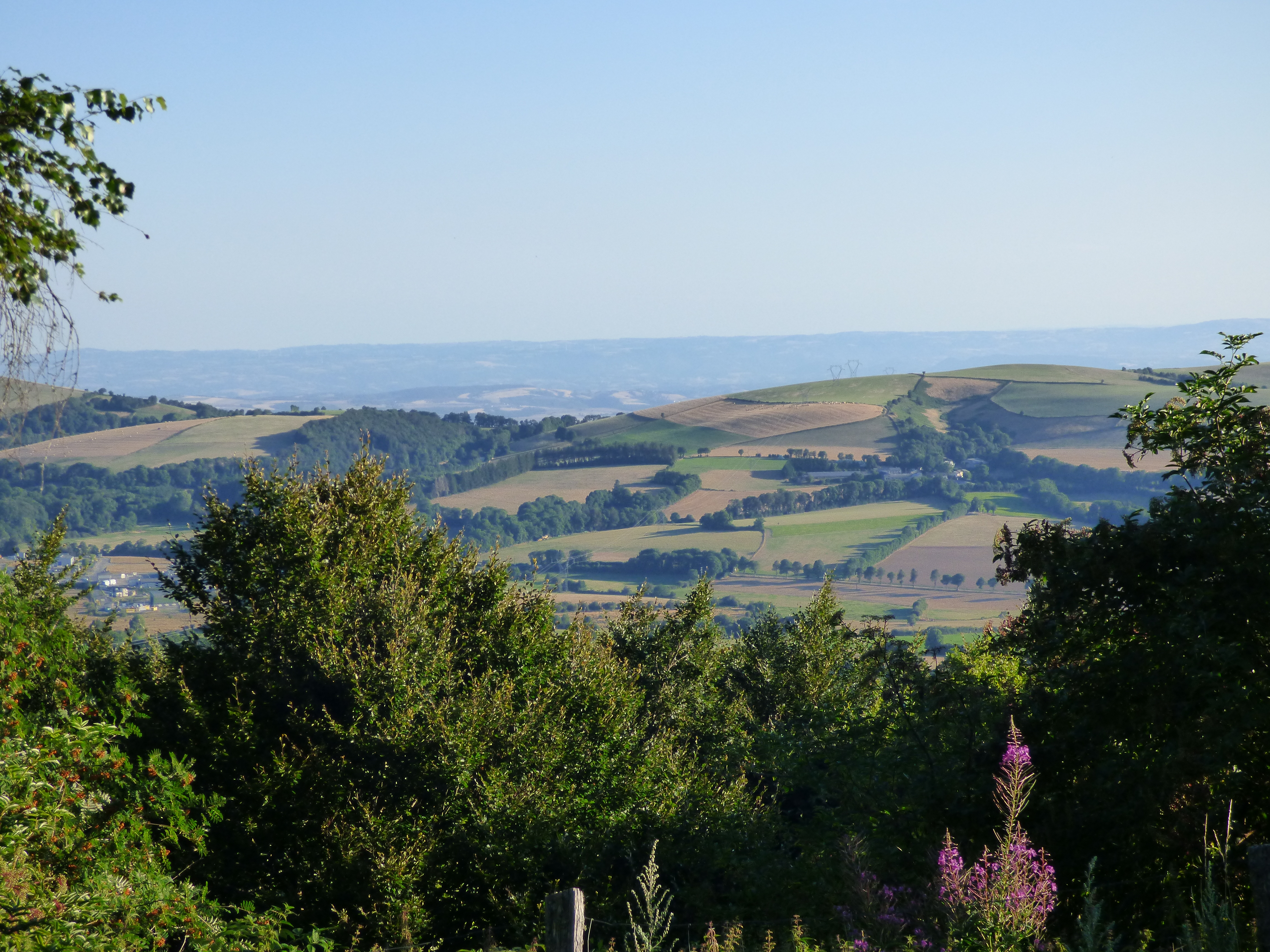 Aire ombragée sur les pentes du Pic du Montalet offrant un magnifique panorama sur les Monts de Lacaune.