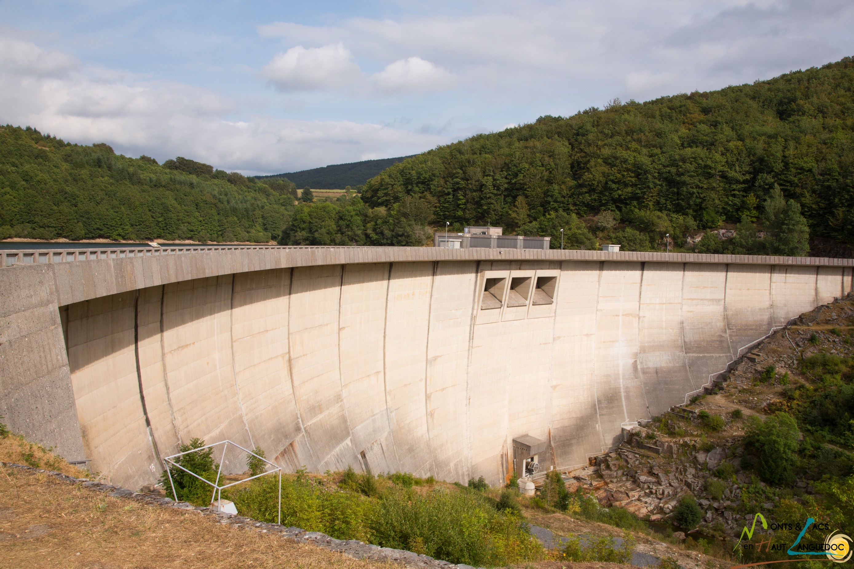 S’engager sur le goudron par la gauche (on quitte ici le balisage blanc-rouge pour ne garder que le balisage jaune). Marcher sur le bas-côté jusqu’au barrage, le franchir