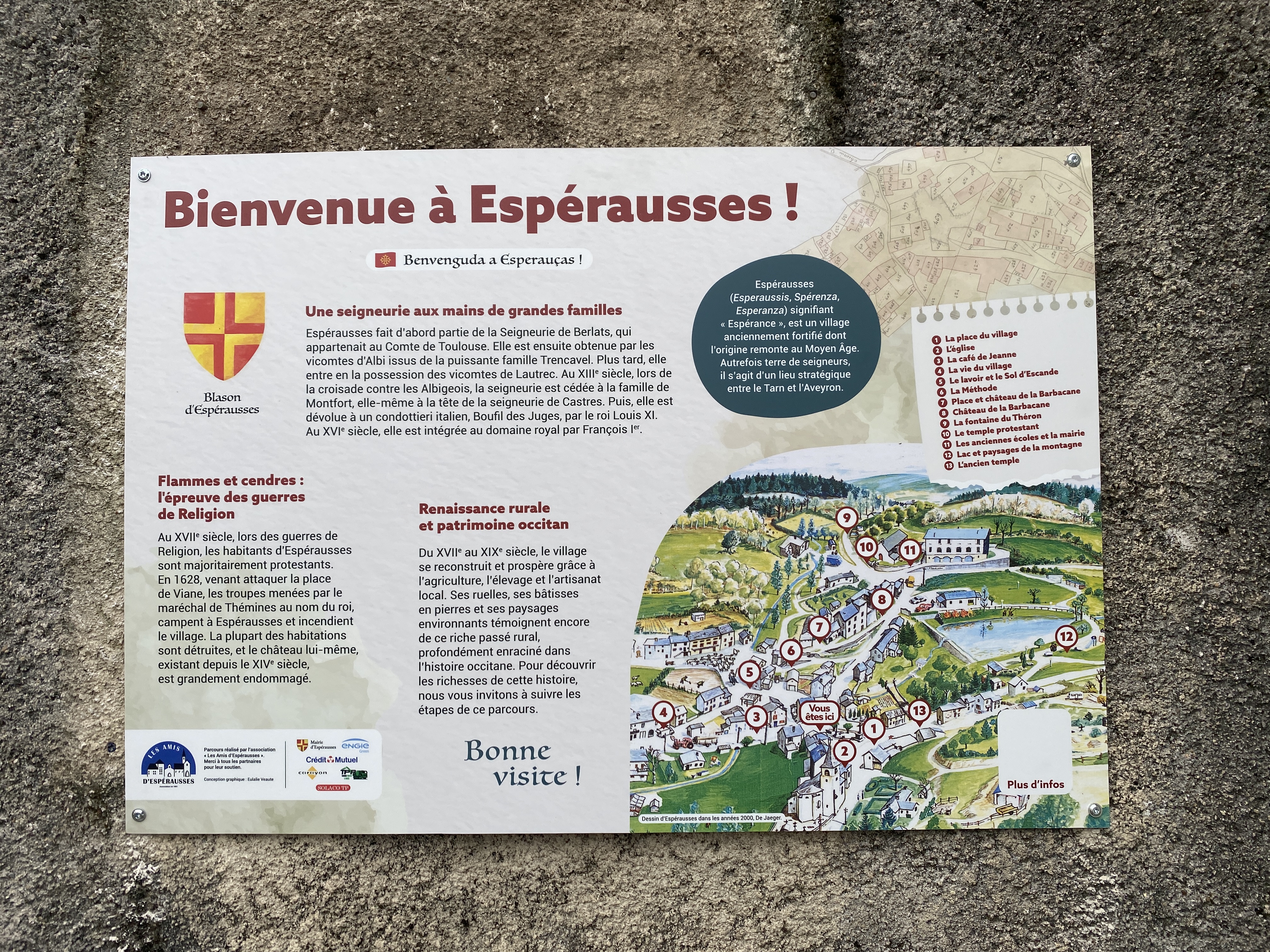 Au cœur des Monts de Lacaune, le village d'Espérausses vous invite à un voyage dans le temps à travers un parcours patrimonial en 13 étapes. Du château à l'église, en passant par le temple, le lavoir et le lac, partez à la découverte du patrimoine local.