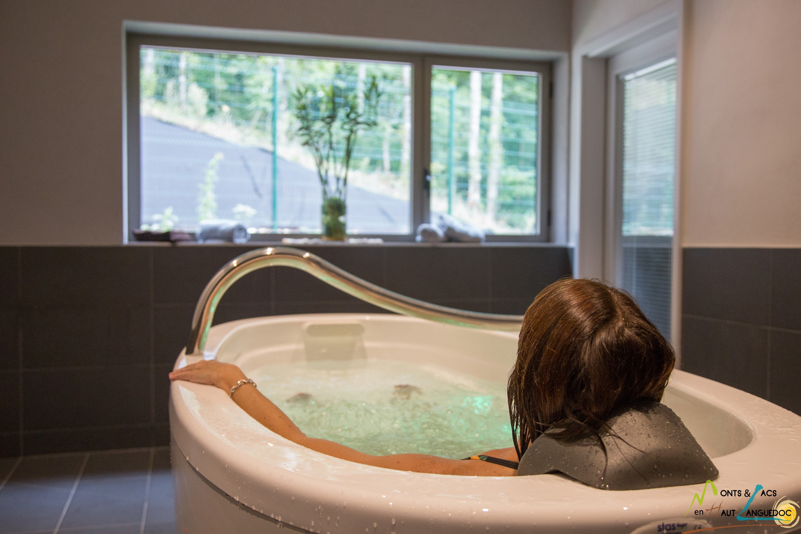 L'hydro massage de l'ensemble du corps associé à la chromothérapie, réalisé dans une eau de source naturellement chaude et non traitée.