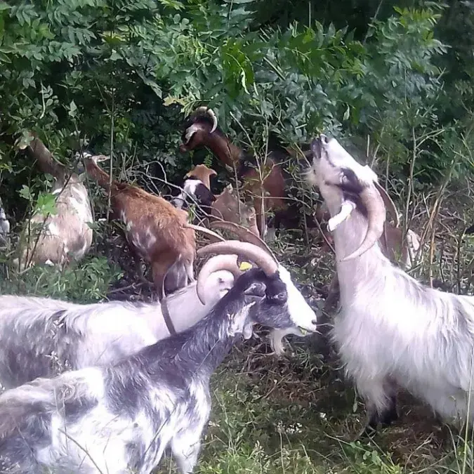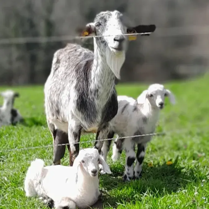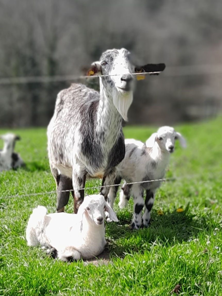 Nous y élevons des chèvres laitières et des brebis allaitantes, qui pâturent en toute saison, sur nos 45 hectares de prairies et de bois.