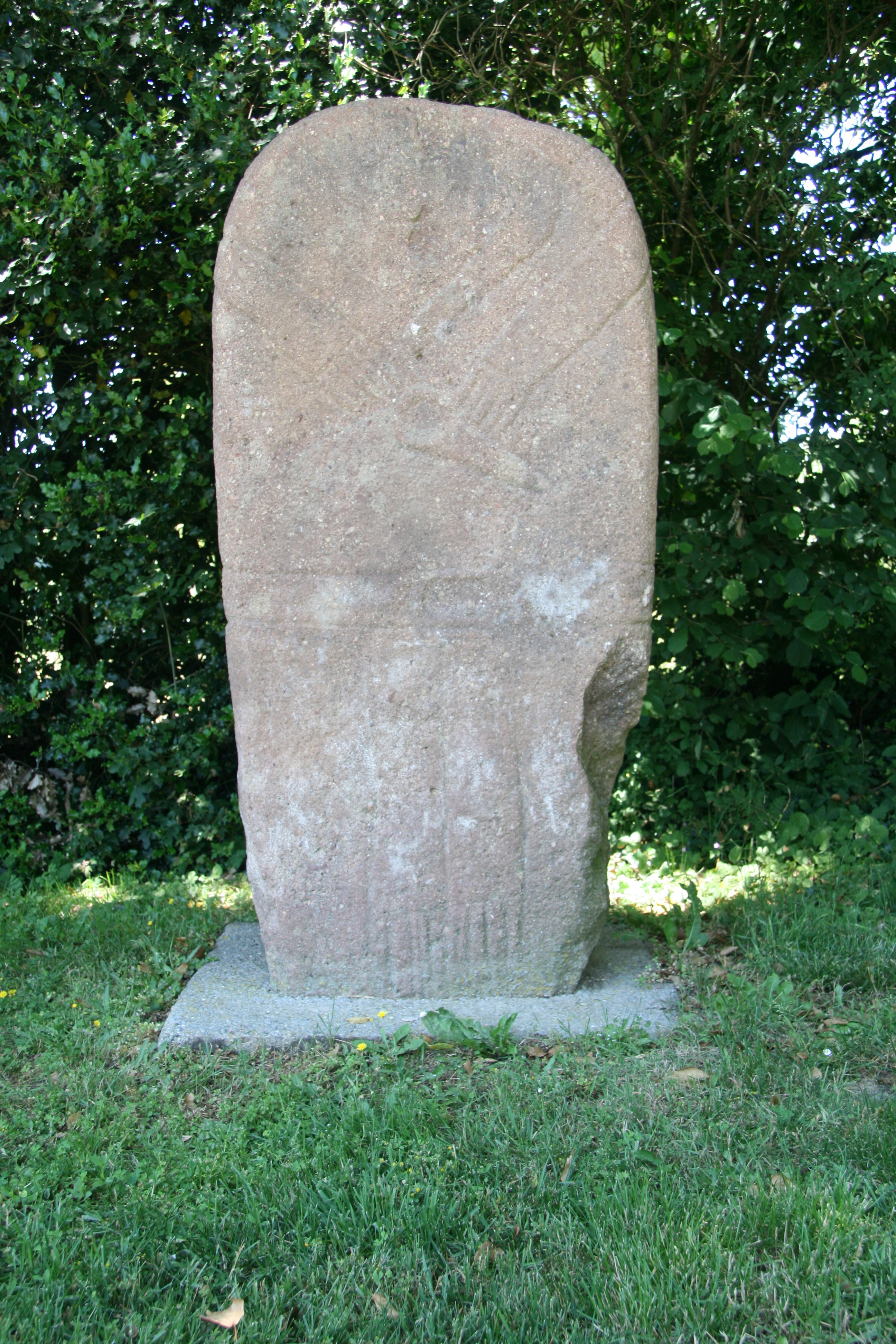 A voir : Statue-menhir de Camp Grand (de type masculin en grès rose d’Aveyron)