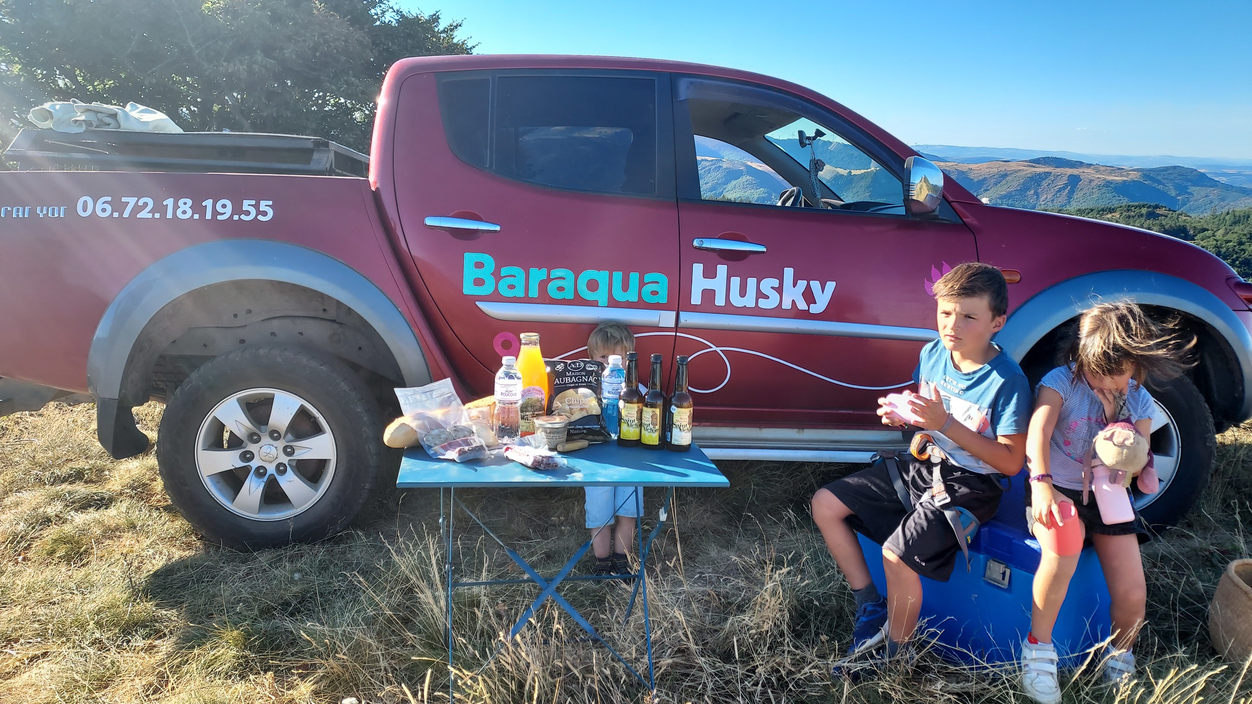 En fin d'après-midi, vers 18h, départ pour une cani-marche avec une pause gourmande en milieu de parcours, au sommet de la serre de la Baraquette, qui nous offre une vue à 360° sur les 3 départements : Hérault, Tarn et Aveyron.