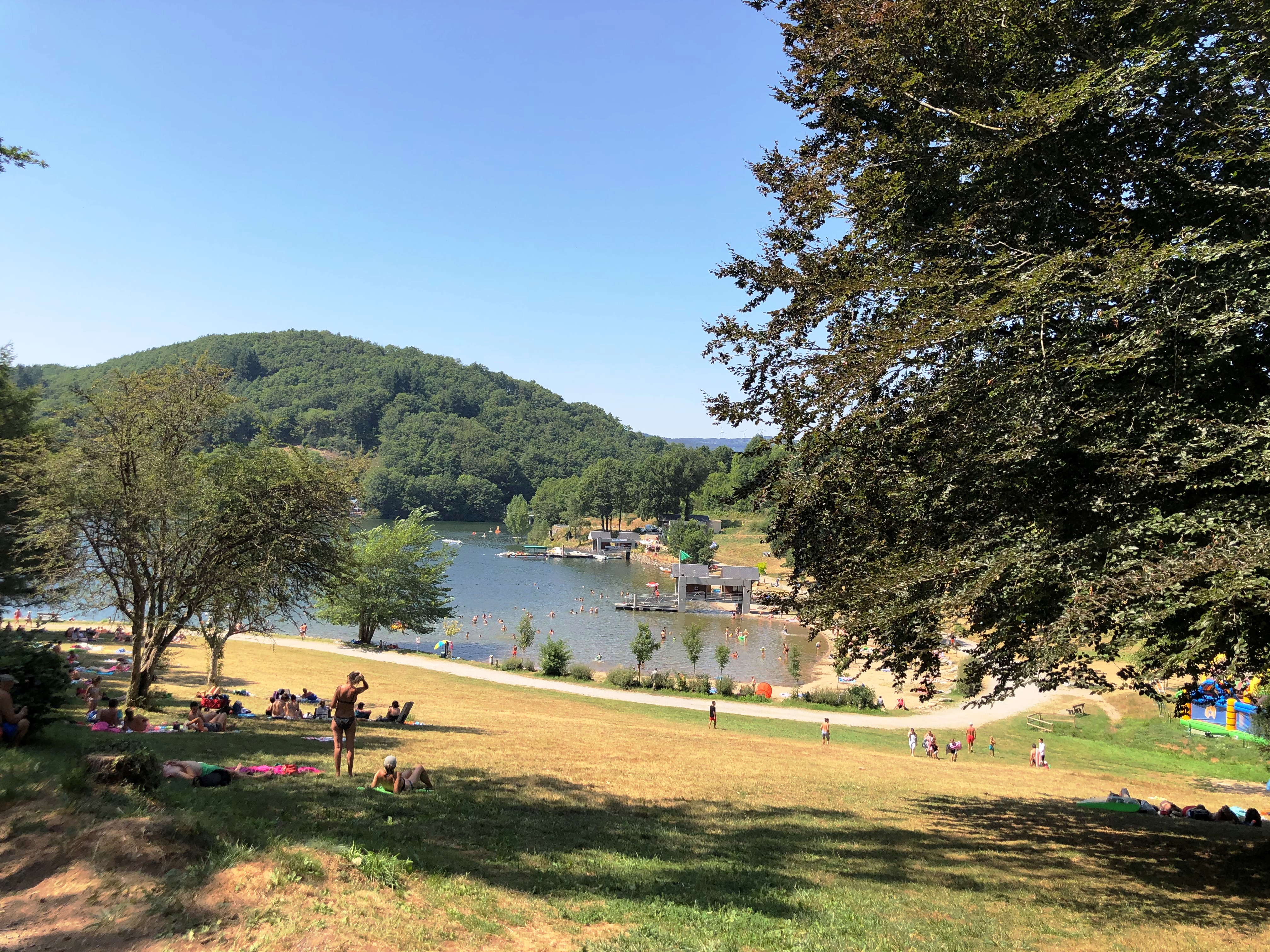 Depuis une plage ensablée, baignade surveillée pendant la saison estivale.