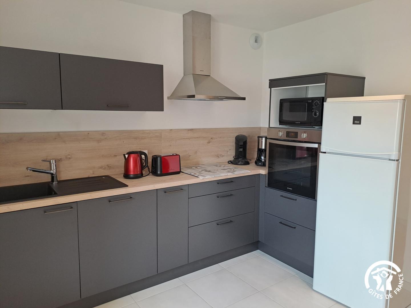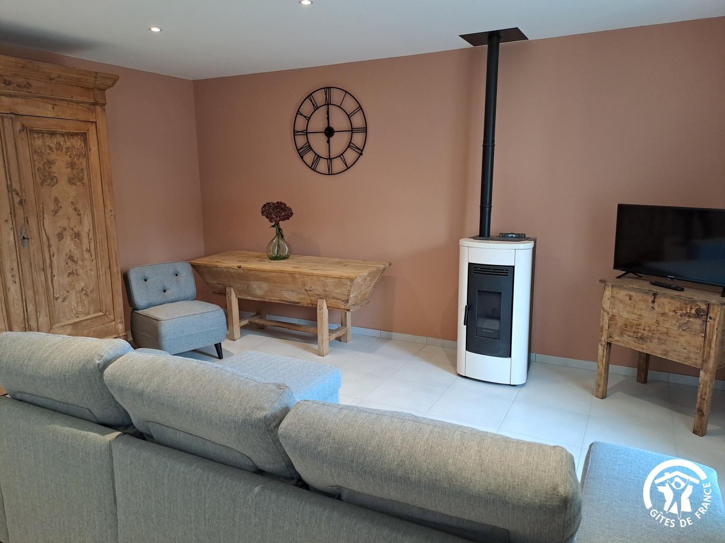 This semi-detached 90 m² gîte, adjoining the owners’ son’s house, offers a friendly setting for a stay with family or friends. It can host up to 4 people, combining comfort and simplicity, with amenities for all seasons.