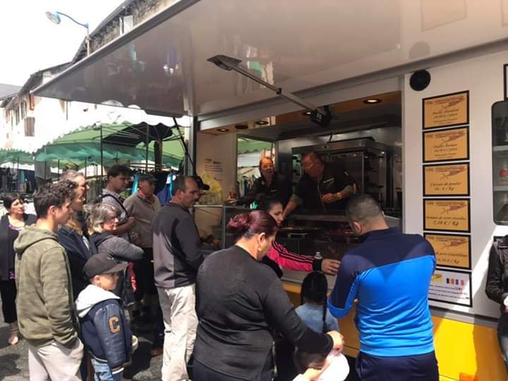 Vente de poulet rôti, ribs de porc (coustillous), pommes de terres rissolées.