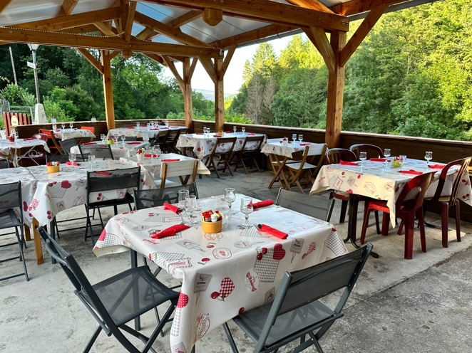 A l'extérieur, une terrasse ombragée face aux collines boisées ; à l'intérieur, une atmosphère rustique, nappes à carreaux et cheminée... L'Auberge de la Resse est l'adresse de toutes les saisons.