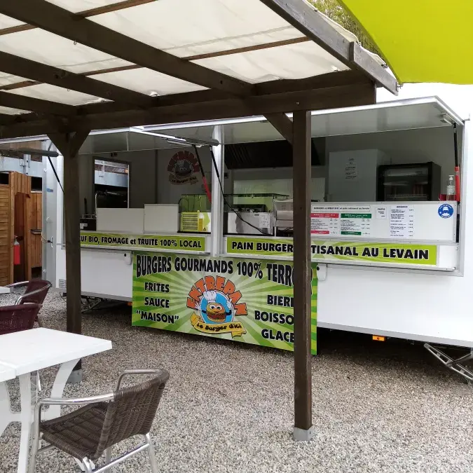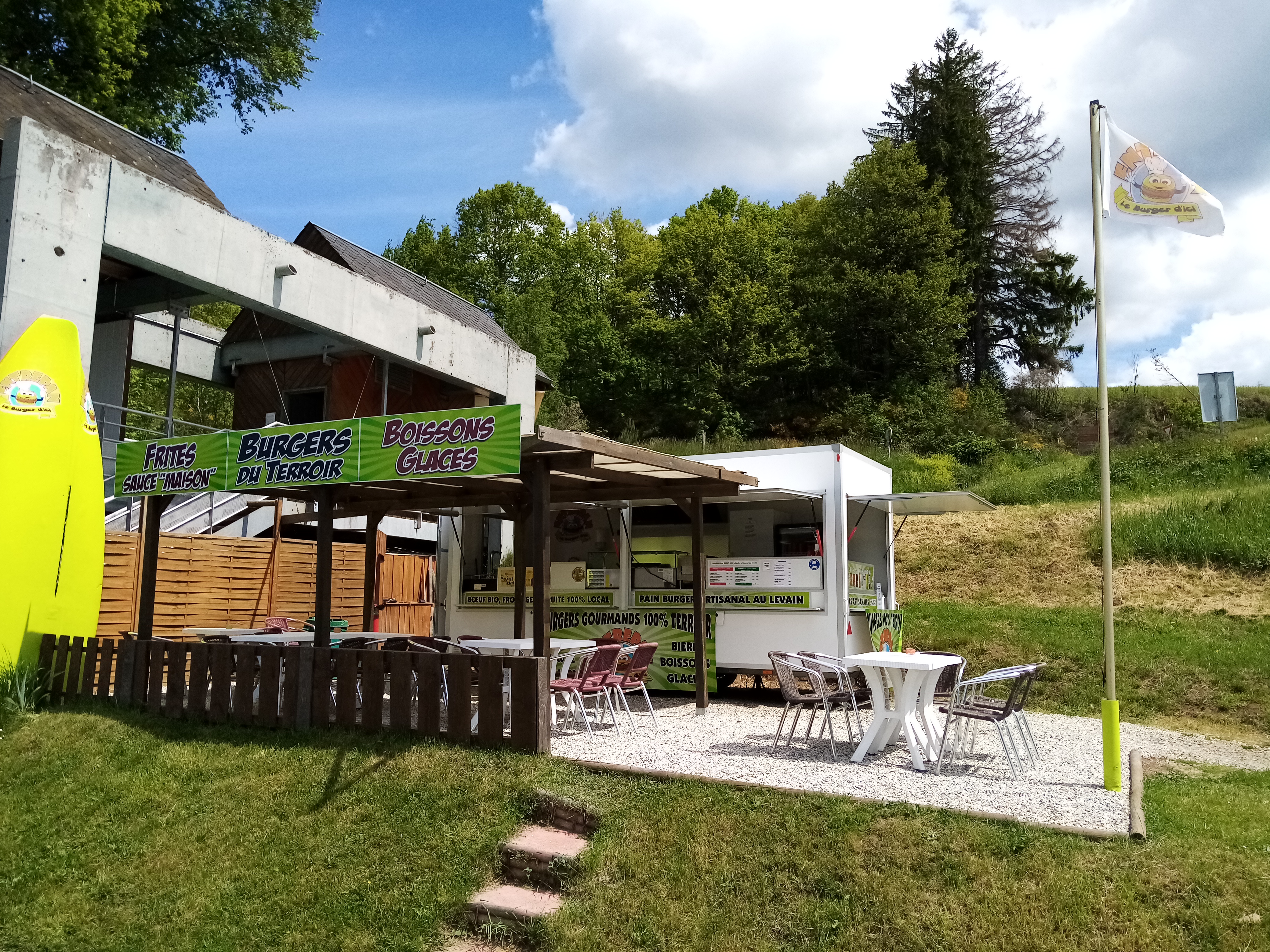 Au bord du lac de La Raviège, les pieds dans l'eau, Xavier vous propose ses Burgers du terroir, boeuf BIO et charcuterie de Fraïsse, pain artisanal au levain de St Pons, bière locale, glaces FLIPO. Burger à la truite fumée de Cambon, burger vegan