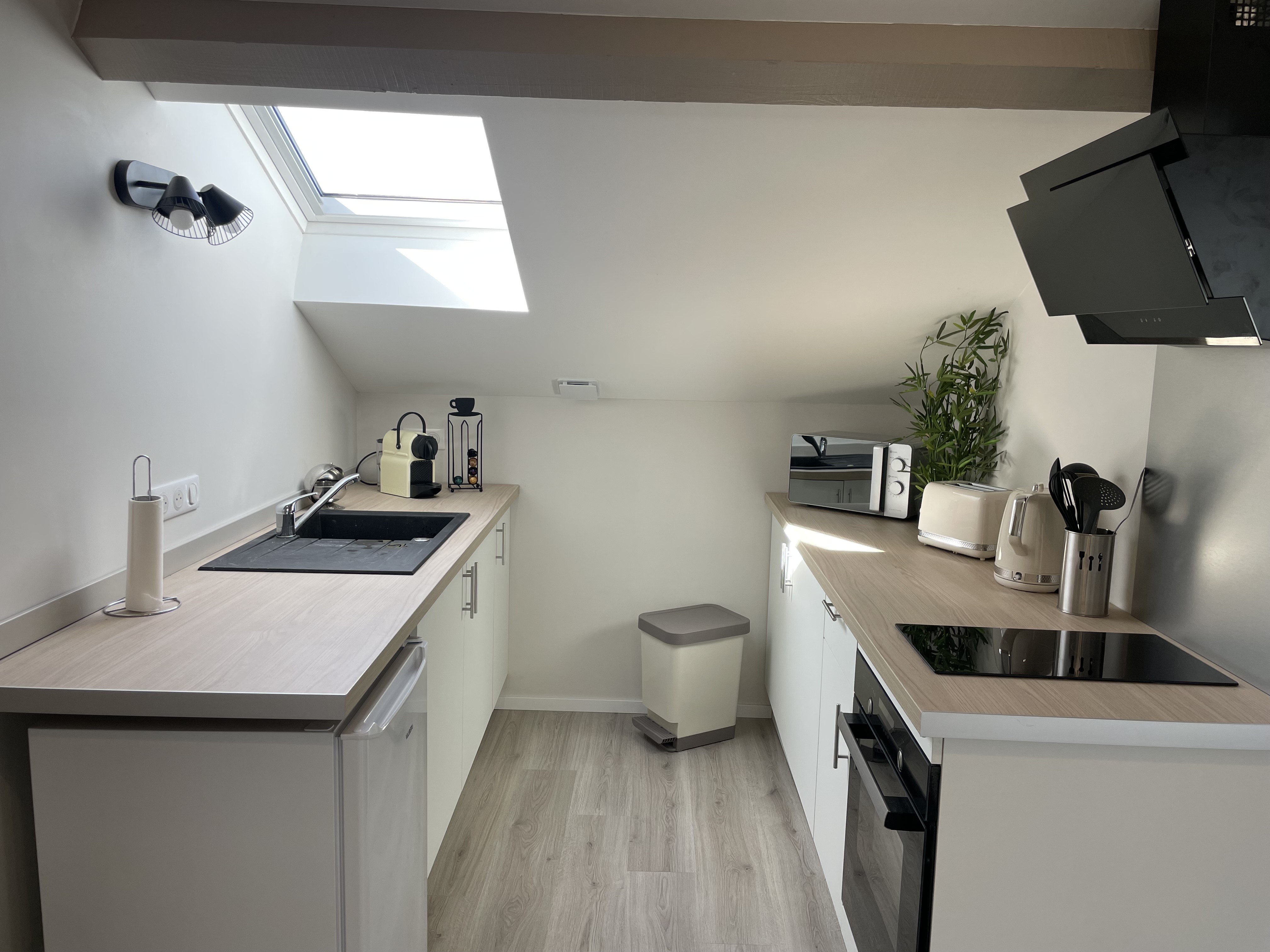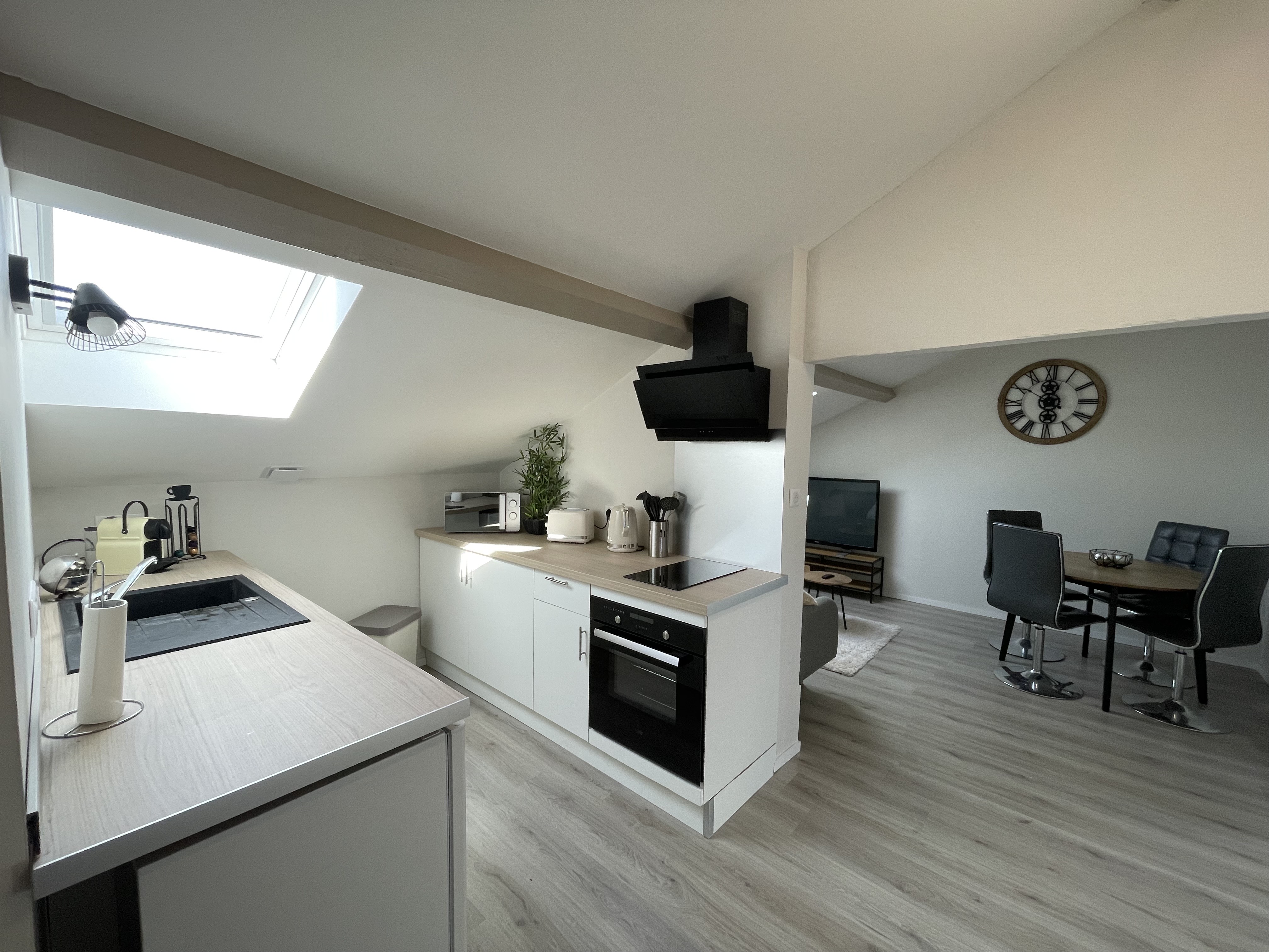 Notre logement se compose d'un lit 2 place et d'un canapé convertible permettant d'accueillir jusqu'à 4 voyageurs. Il est aussi possible d'obtenir un lit pour bébé : il faudra simplement nous le préciser en amont. L'appartement est aussi équipé d'un bureau. L'accès est facile, il se fera par l'intermédiaire d'une boîte à clef. Les codes vous seront transmis 24 heures avant votre arrivée mais je reste disponible pour vous accueillir si vous le souhaitez. L'appartement se situe au 2ème étage, sans ascenseur. Un parking est présent juste devant l'immeuble.