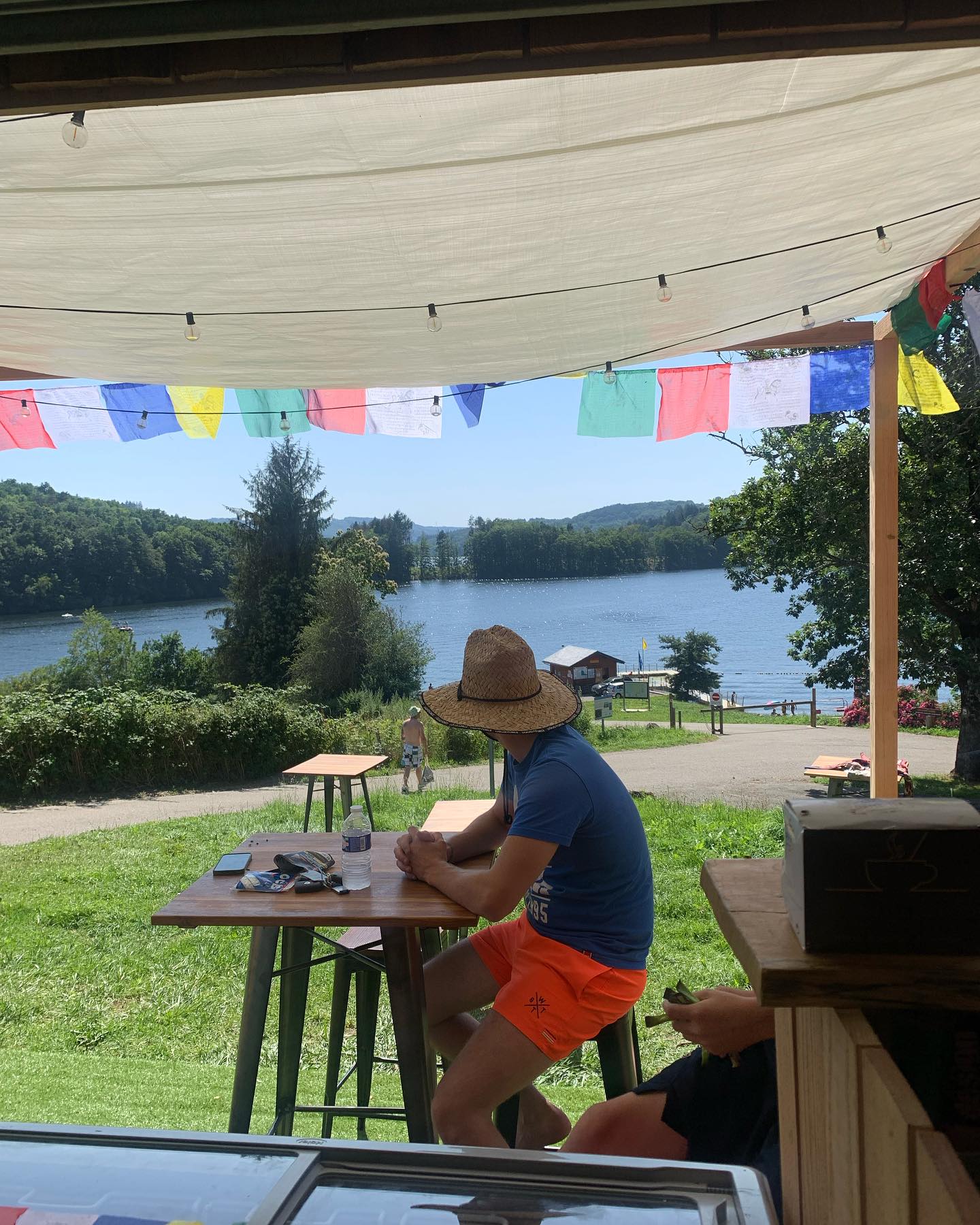 Lieu convivial au bord du lac de la Raviège pour déguster quelques tapas avec des produits locaux.