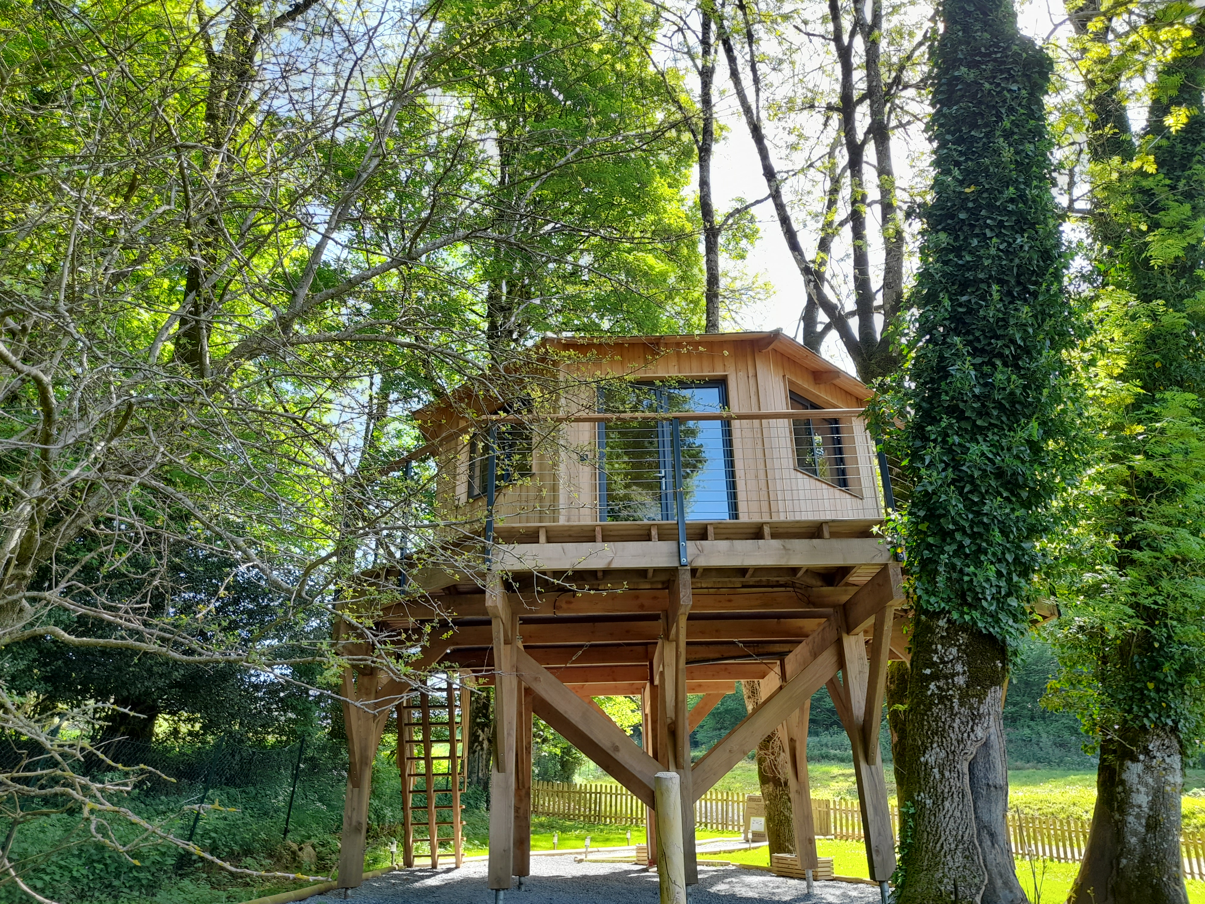 Nichée au milieu des arbres, à 4 mètres de haut, notre Cabane vous offre une vue panoramique sur un environnement verdoyant.
