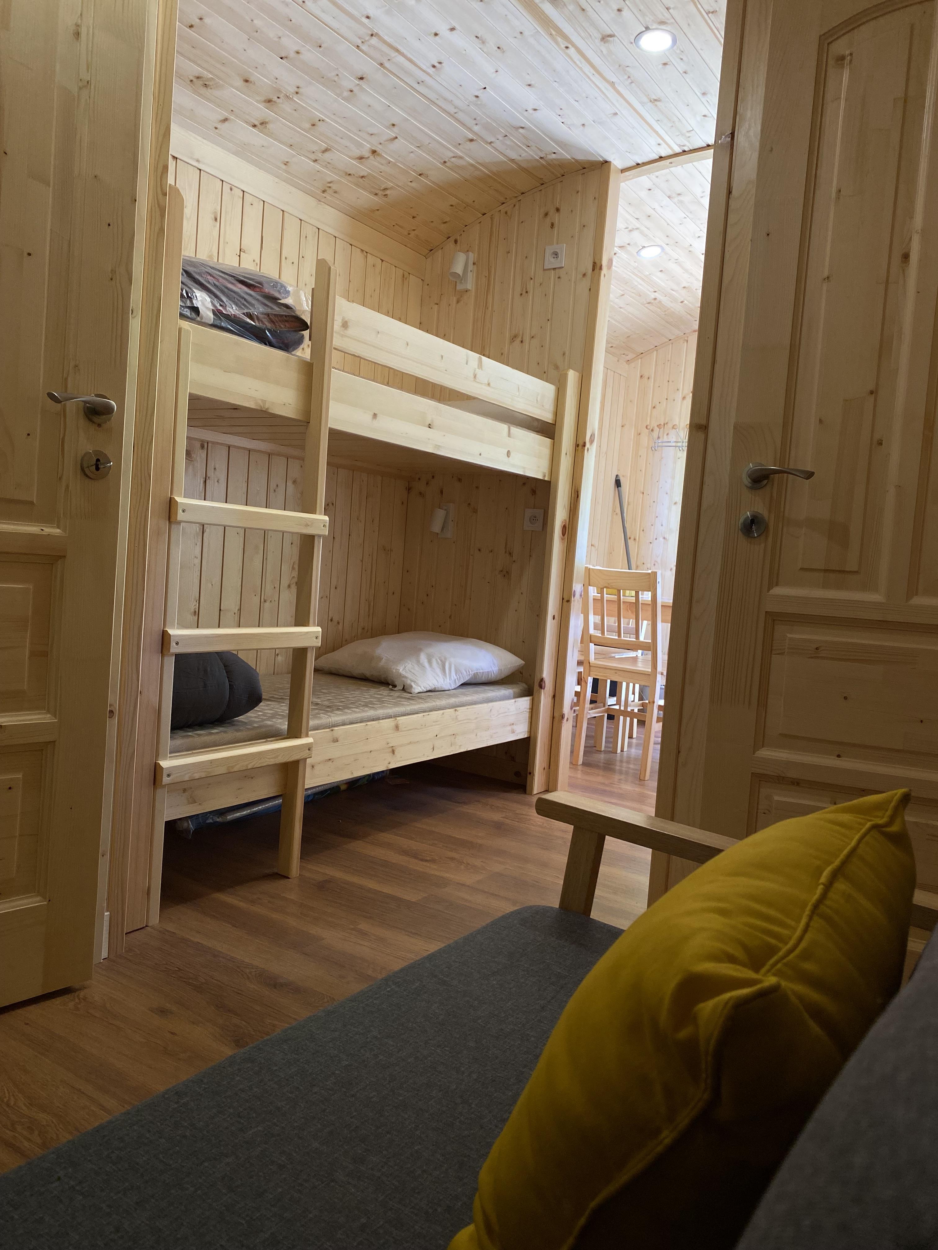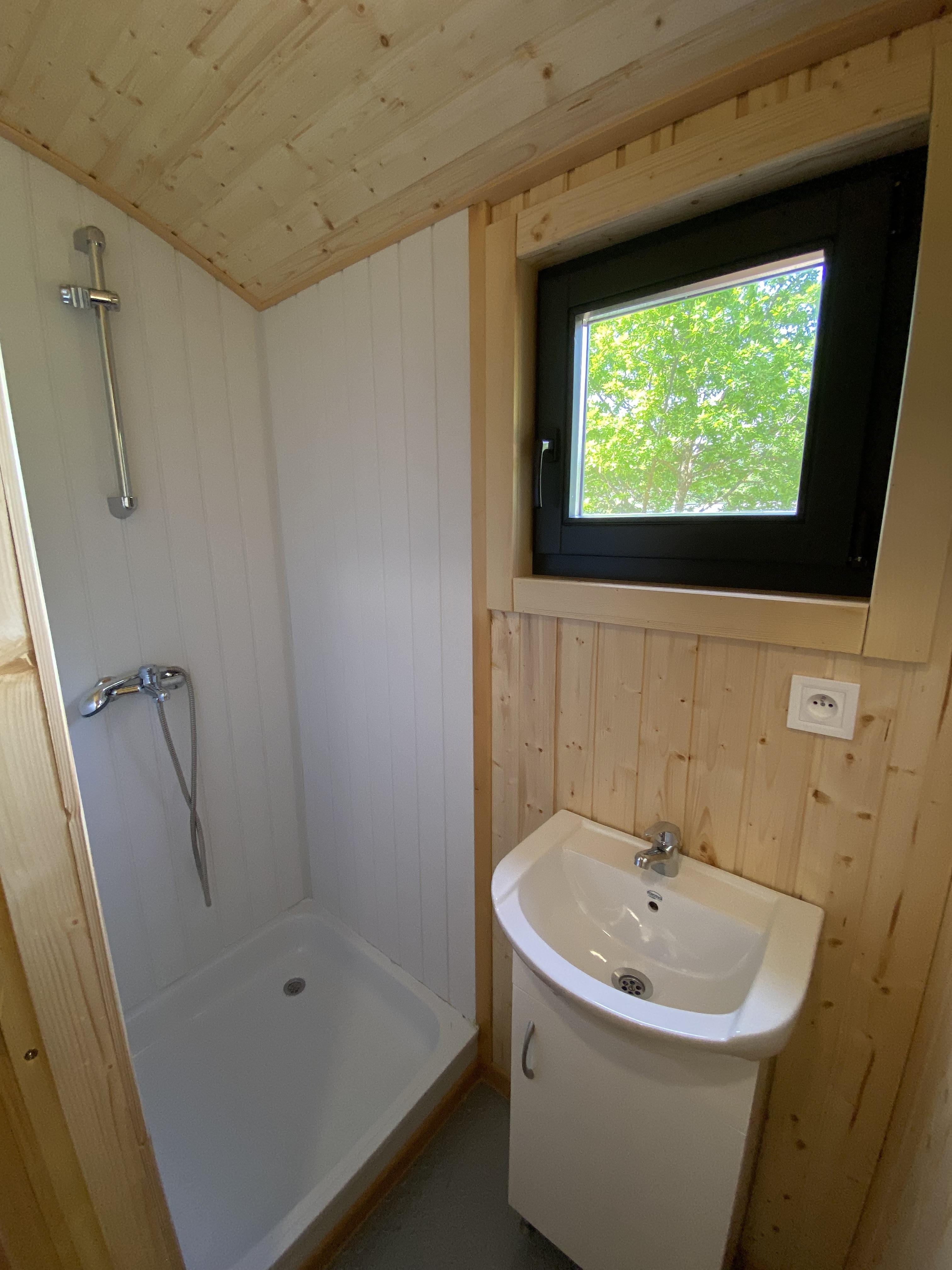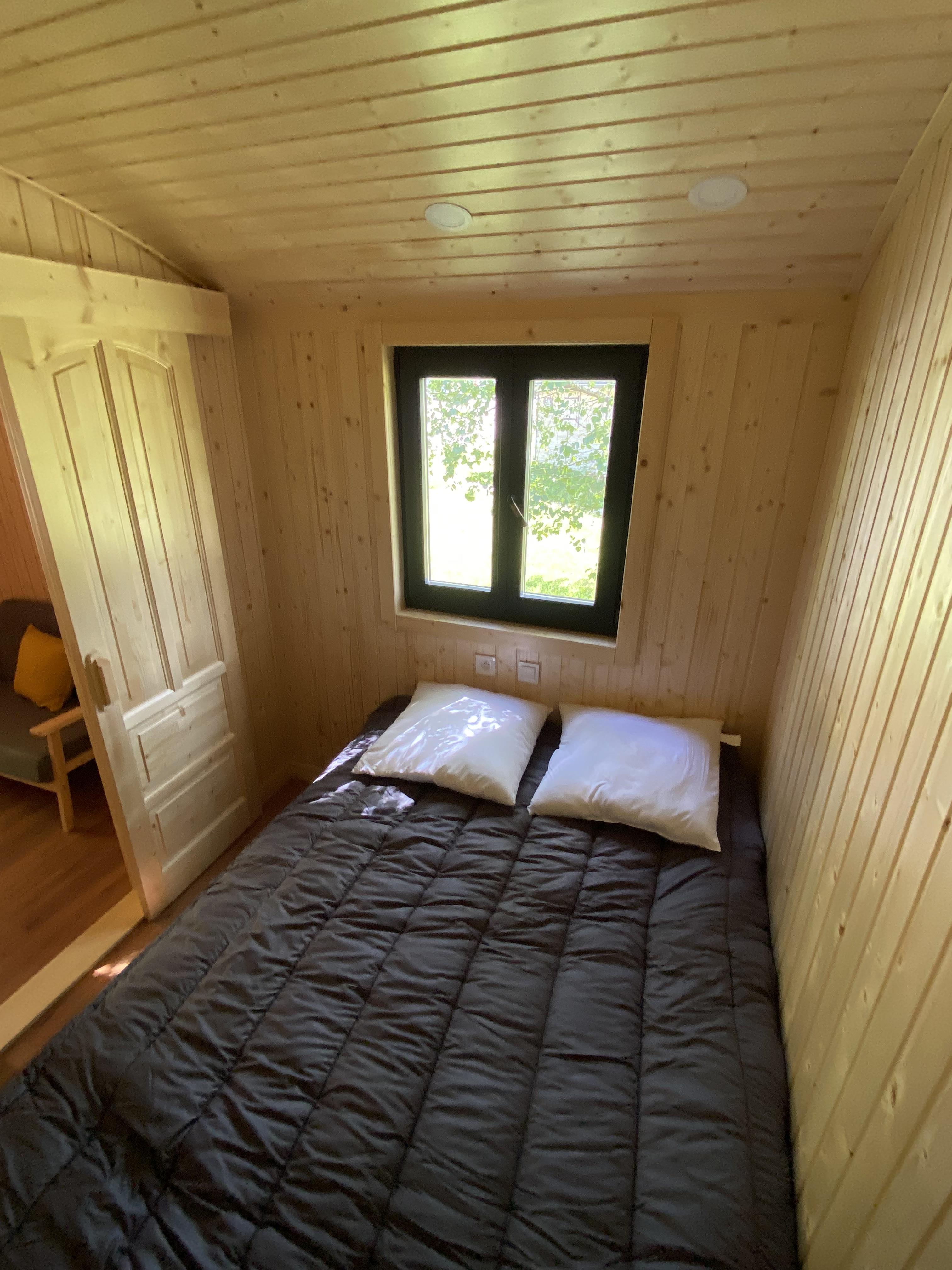 Environ 25 m² avec terrasse, accès à la piscine, place de parking, accès à internet, 2 lits superposés, kitchenette équipée pour 4 personnes, réfrigérateur avec freezer, 2 plaques électriques, coin nuit avec lit de 140 x 190, toilette et salle d'eau dans la roulotte, animaux acceptés.