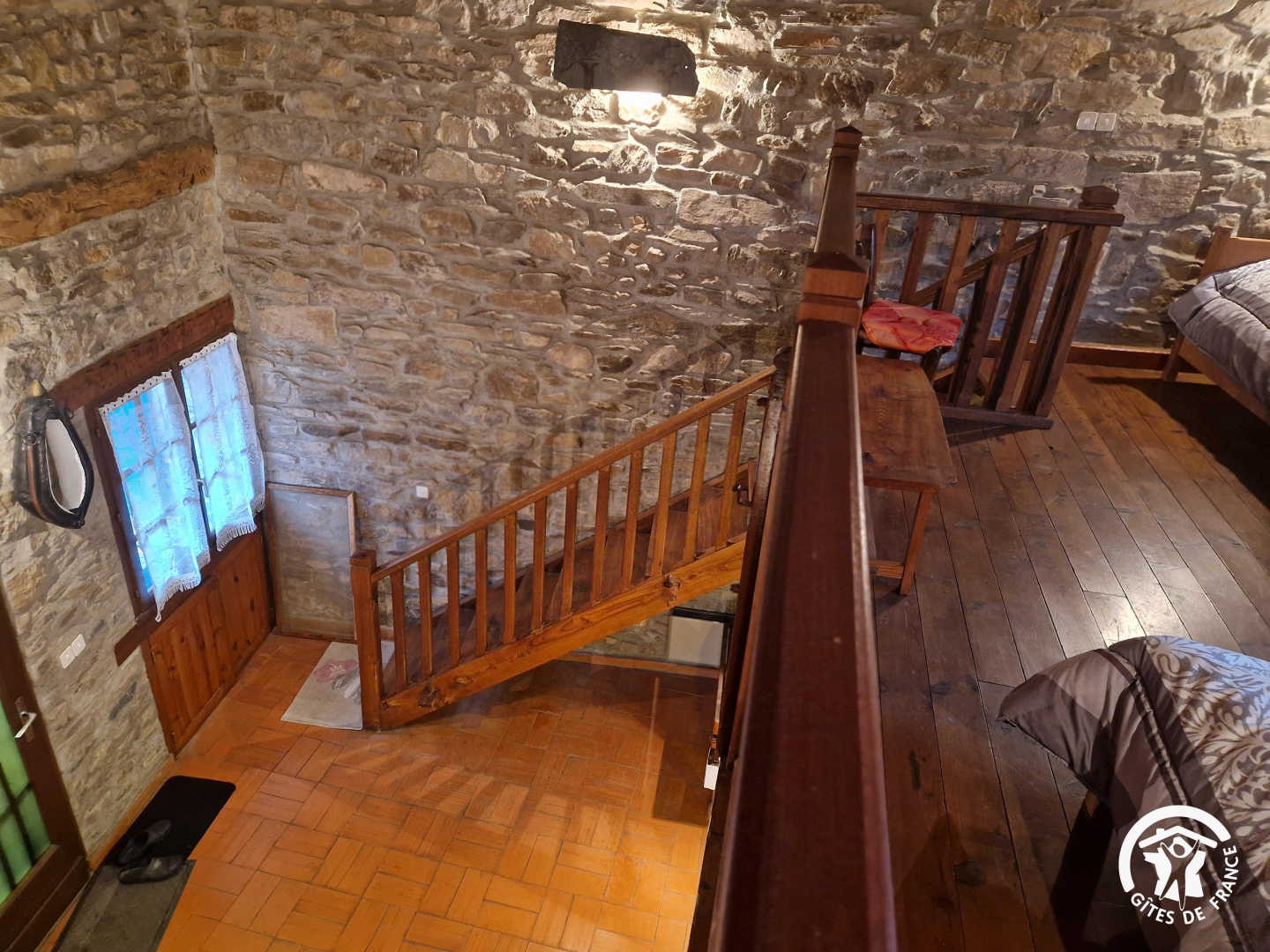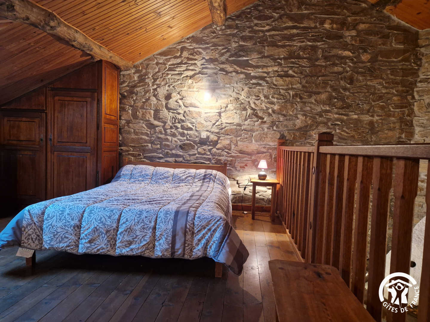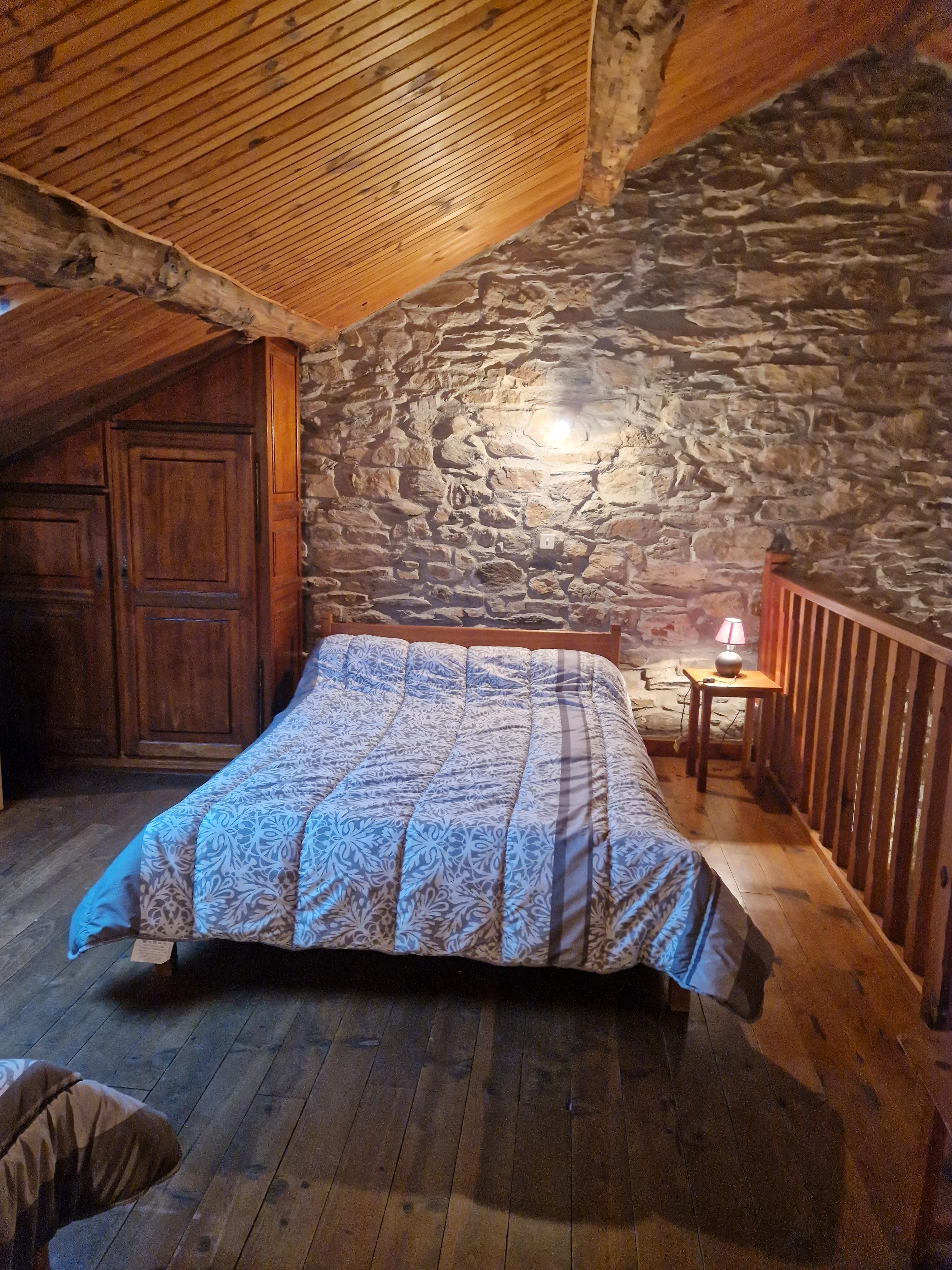 A l'étage en mezzanine, deux lits doubles 140X190, 1 lit-commode 0.90. Un paravent est disponible pour séparer les 2 couchages. Chauffage électrique, cheminée bois.