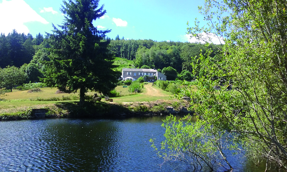 Gîte mitoyen dans une bâtisse en pierre avec entrée indépendante, au milieu des bois, sur un domaine de 11 ha, dans une oasis de verdure où vous pourrez profiter du calme, du réveil au chant des oiseaux, de la vue sur un étang privé et les montagnes.