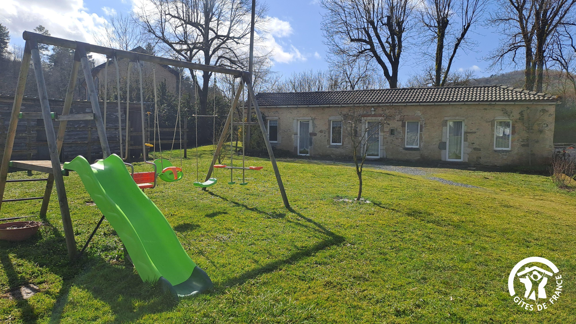 LE GITE est indépendant et de plain pied, à proximité de la maison des propriétaires. D'un côté du gîte, vous profitez d'une terrasse ensoleillée sur la cour de devant, et de l'autre côté, à l'arrière du gîte, vous disposez d'un jardin enherbé privatif.