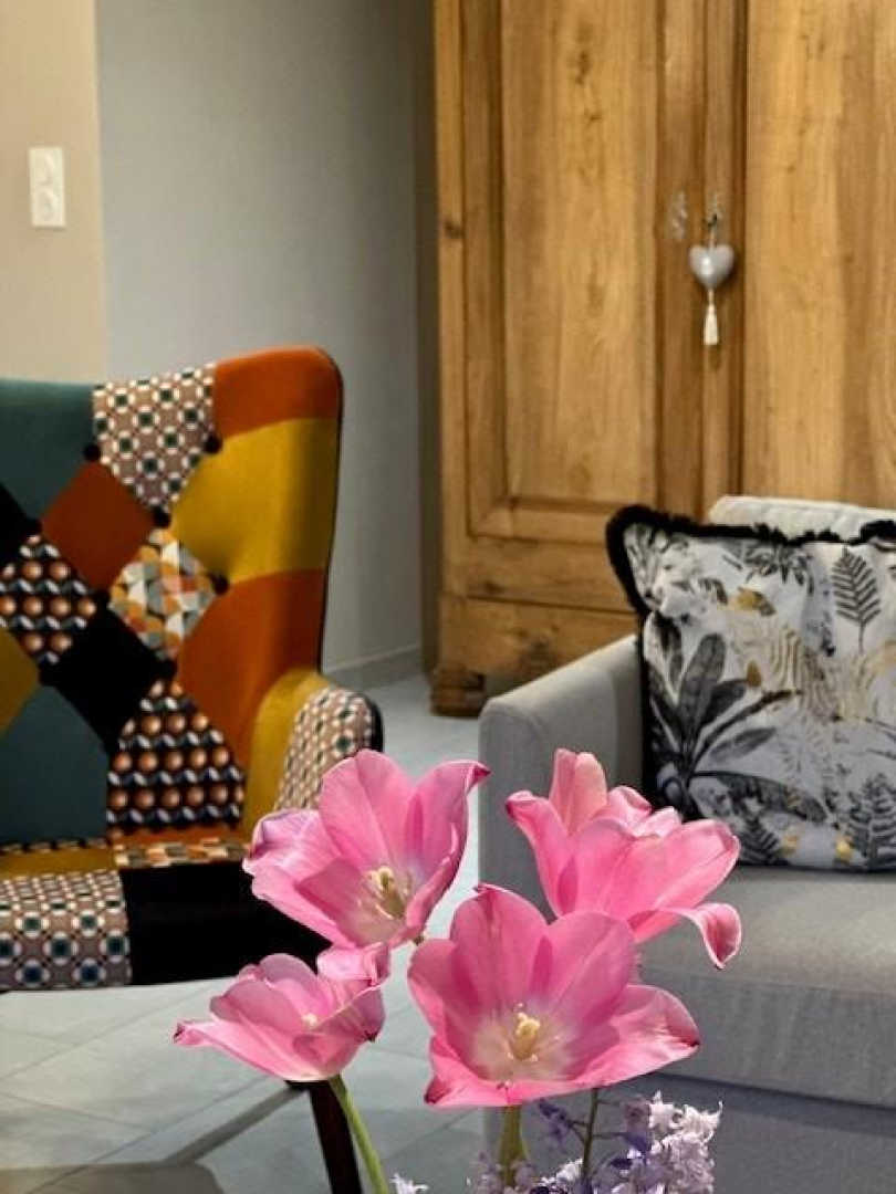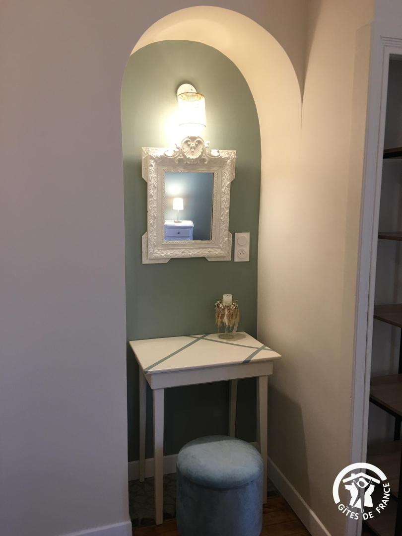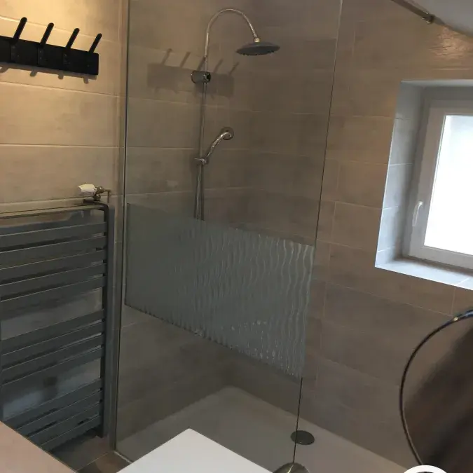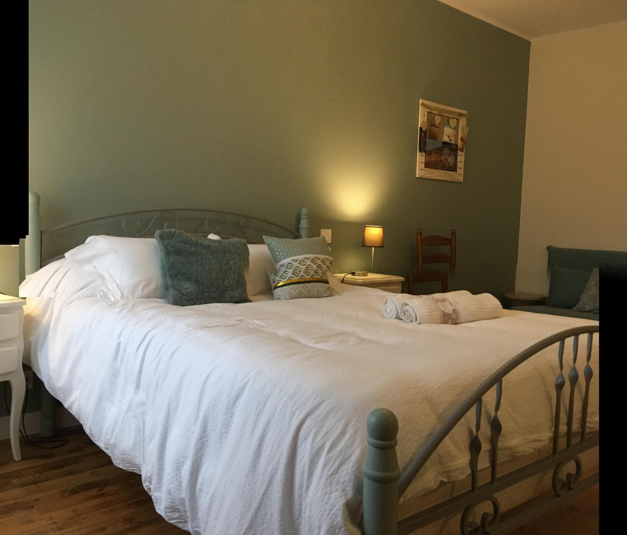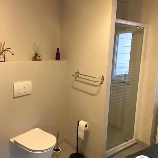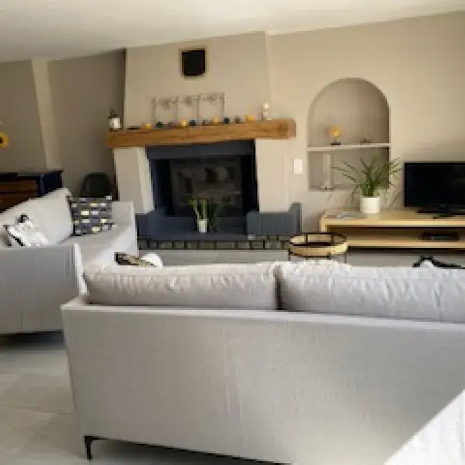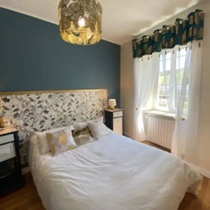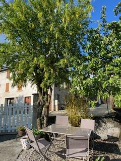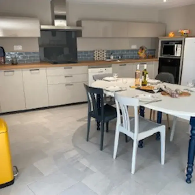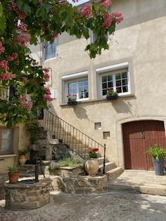 La maison mitoyenne à celle des propriétaire a été récemment rénovée pour offrir des espaces cosy et lumineux. Le logement se trouve en étage. Les escaliers extérieurs à côté du parking vous mènent directement dans l'espace salle à manger- cuisine. Bien agencée, celle-ci se dispose d'un réfrigérateur avec compartiment congélateur, de cafetières à filtre et nespresso, de mixer, robot de cuisine, autocuiseur, appareil à raclette, grille-pain, bouilloire... Le coin salon s'agence autour de la cheminée – insert. Sur ce palier, se trouve la première salle d'eau avec toilettes.