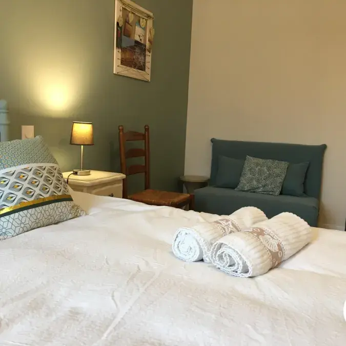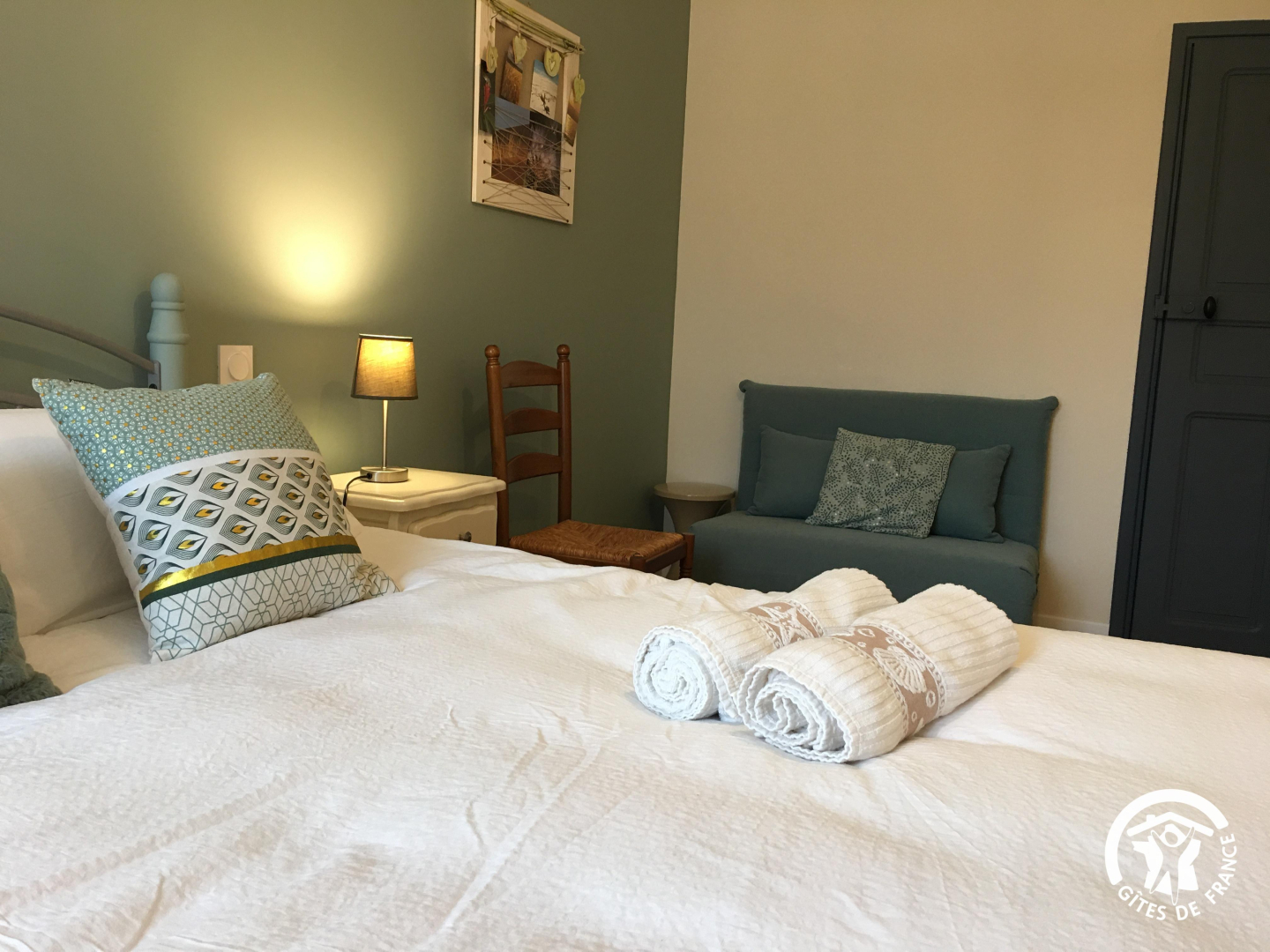 1 chambre avec 1 lit 140 x 190 + une banquette dépliable pour faire un lit simple 100.