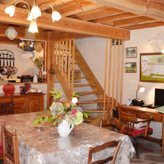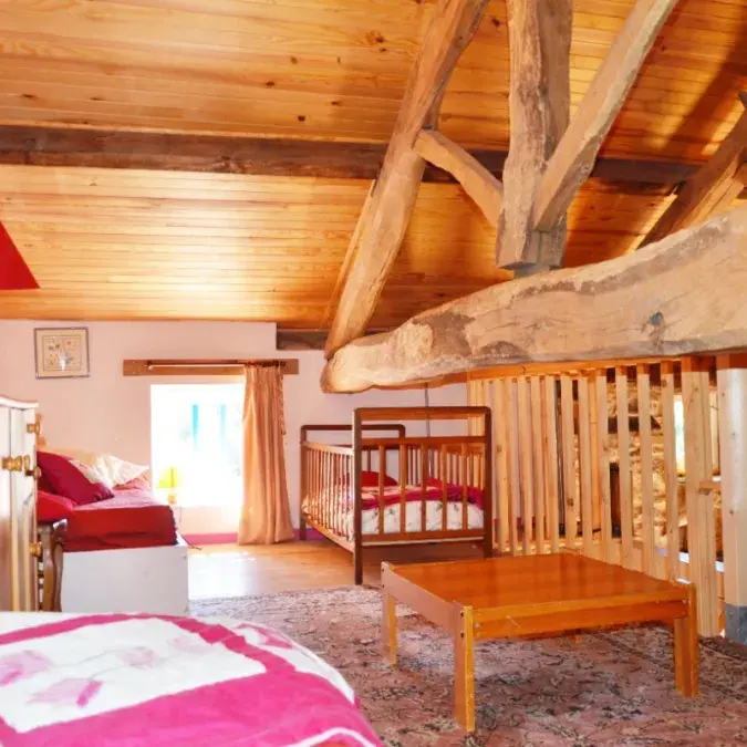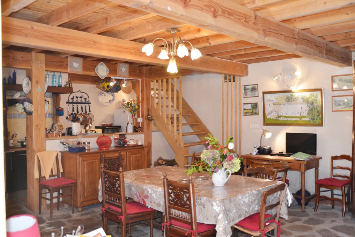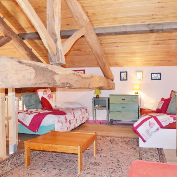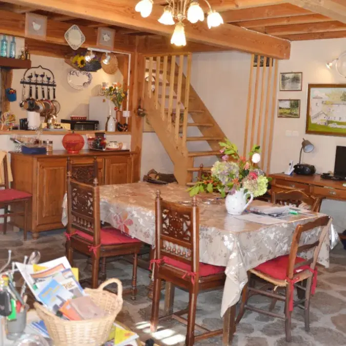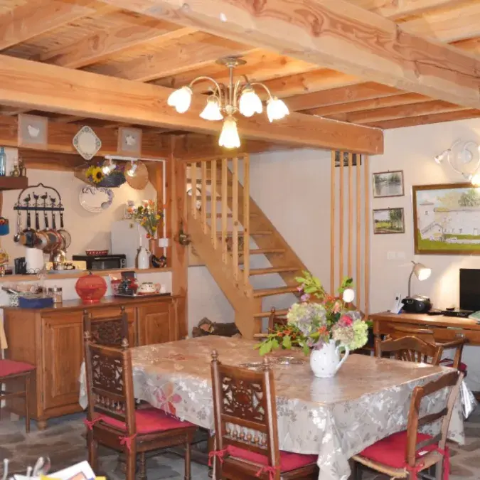 Mitoyenne à celle de la propriétaire, cette maison de charme du 18ème siècle à garder son charme d'antan avec tout le confort actuel. Elle vous offre : une pièce de vie (38 m2, micro-ondes, lave-vaisselle, combiné congélation, poêle à bois, TV, magnétoscope, lecteur DVD). Etage : salon (28 m2, cheminée avec insert, clic-clac, chambre (9 m2, 1 lit en 140), salle d'eau (douche, WC). WC. Mezzanine (19 m2, 3 lits en 90). Location draps, linge de maison et de toilette. Chauffage. Wifi. Lave-linge. Parking. Extérieur : terrain arboré, cour, salon de jardin, barbecue, piscine hors sol, jeux enfants, ping pong, salle de jeux (four à pain).