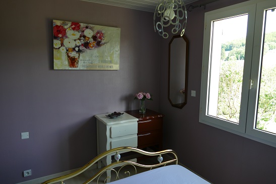Chambre avec grand lit (commode et placard). Possibilité de mise à disposition d'un lit parapluie pour enfant. Draps fournis.